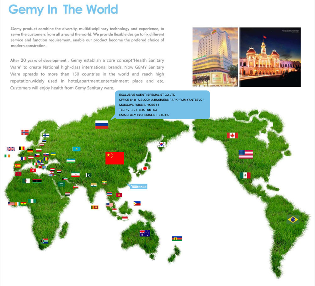 Благодаря оптимальному соотношению цены и качества своих изделий компании Gemy и Abber успешно продвигают их наравне с другими лидерами отрасли, особенно в премиальном сегменте, на рынках более чем 50 странах мира. Ванны успешно продаются в странах Европы, Соединенных Штатах Америки, Канаде, Австралии, в странах Азии. С 2009 года Gemy поставляет свою продукцию в России и страны Таможенного Союза с сертификатом ЕАС.