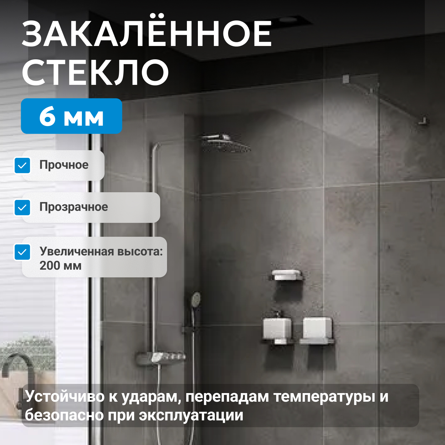 - закаленное, прозрачное стекло 6 мм