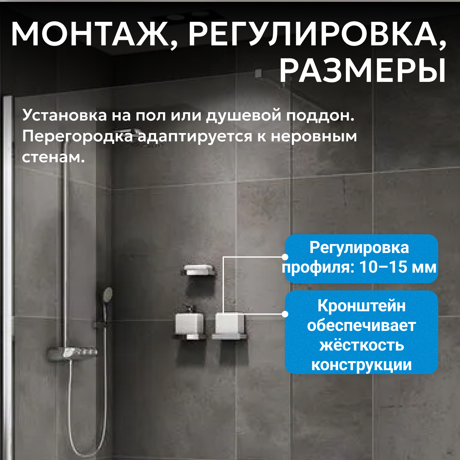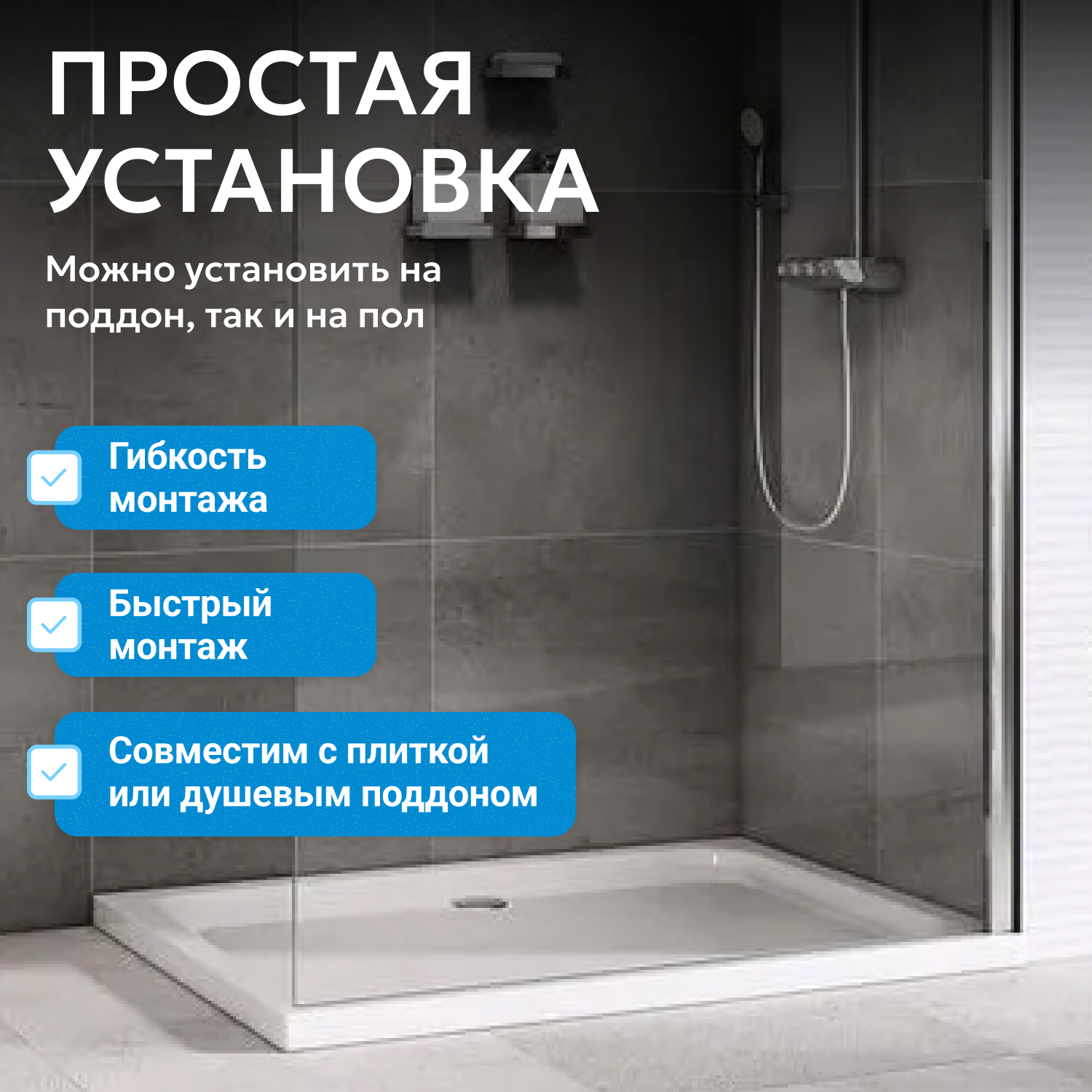 - возможна установка на пол и на поддон, поддон приобретается отдельно
