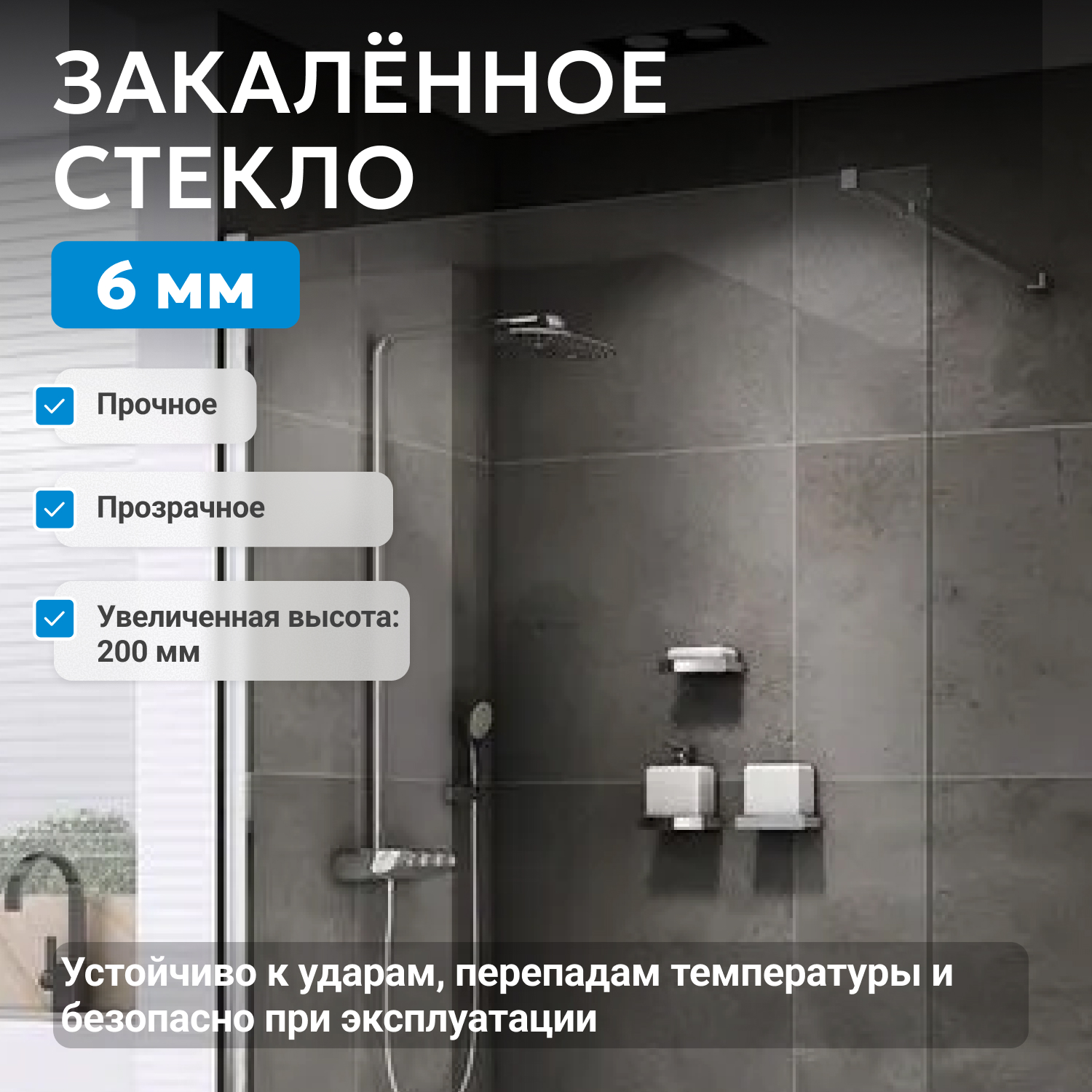 - закаленное, прозрачное стекло 6 мм