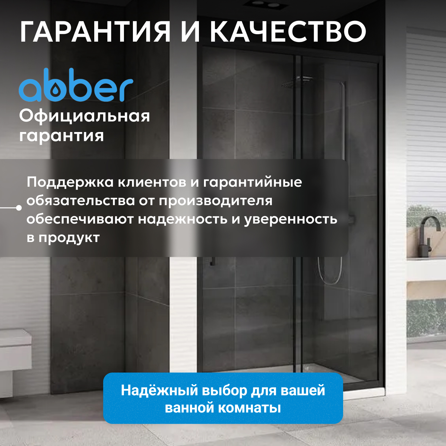 Душевые двери ABBER изготавливаются из алюминиевого профиля, окрашенного порошковой краской и закалённого, ударопрочного стекла. Также стеклянные душевые двери обладают рядом преимуществ: они легко моются, надежны и долговечны в эксплуатации.