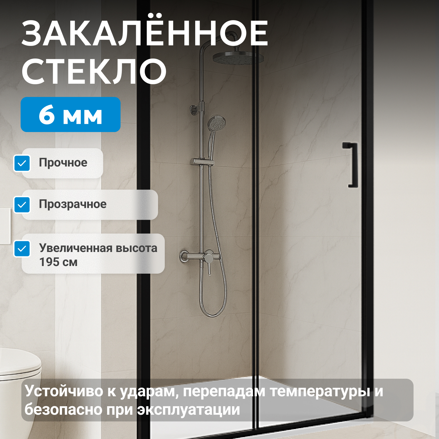 - закаленное, прозрачное стекло 6 мм