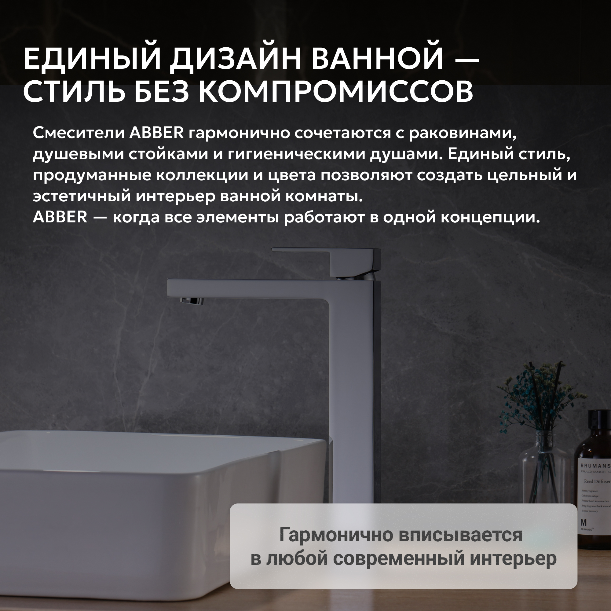 Корпус всех смесителей ABBER изготавливается из латуни техникой цельной отливки при атмосферном давлении, что обеспечивает высокую прочность изделия и устойчивость к перепадам давления.