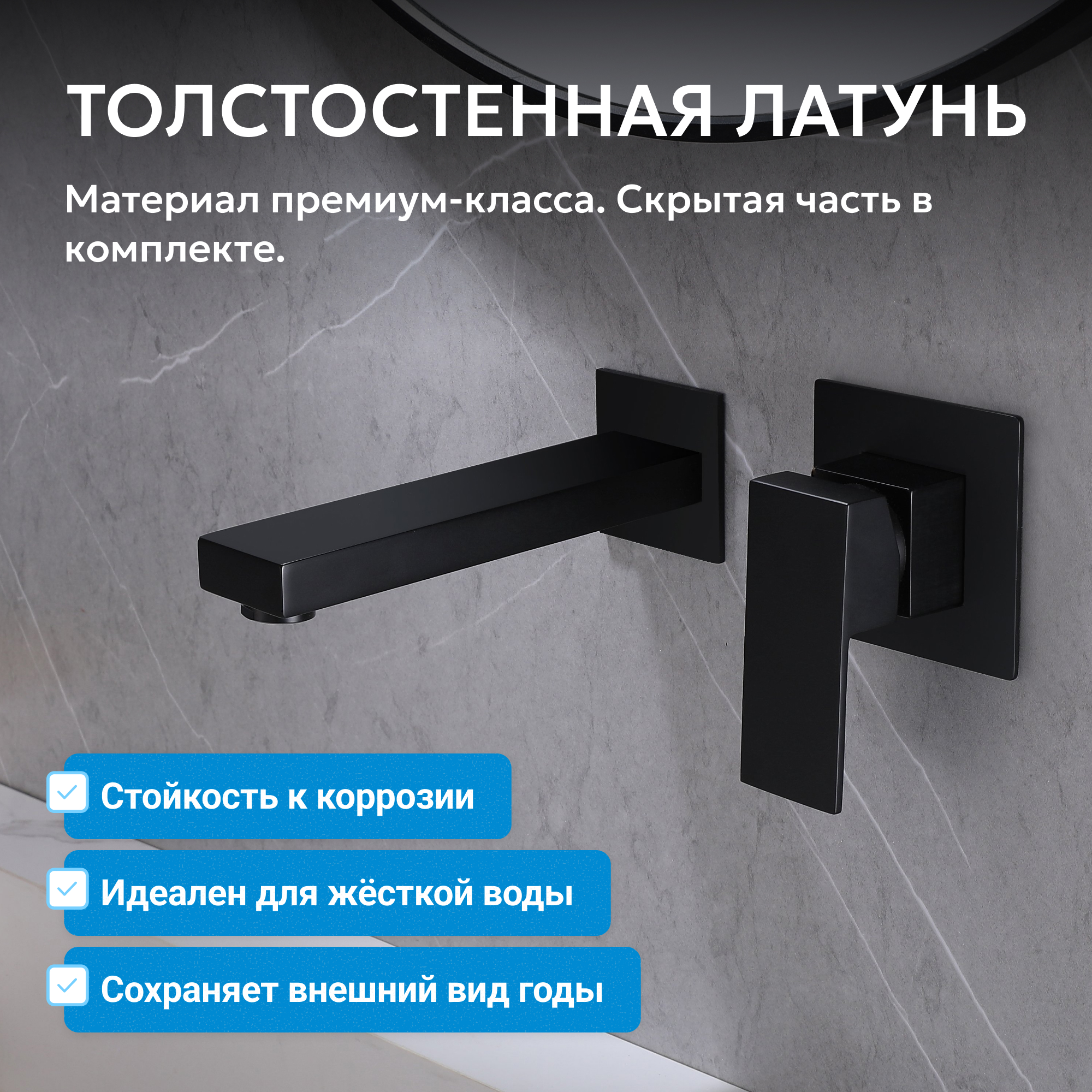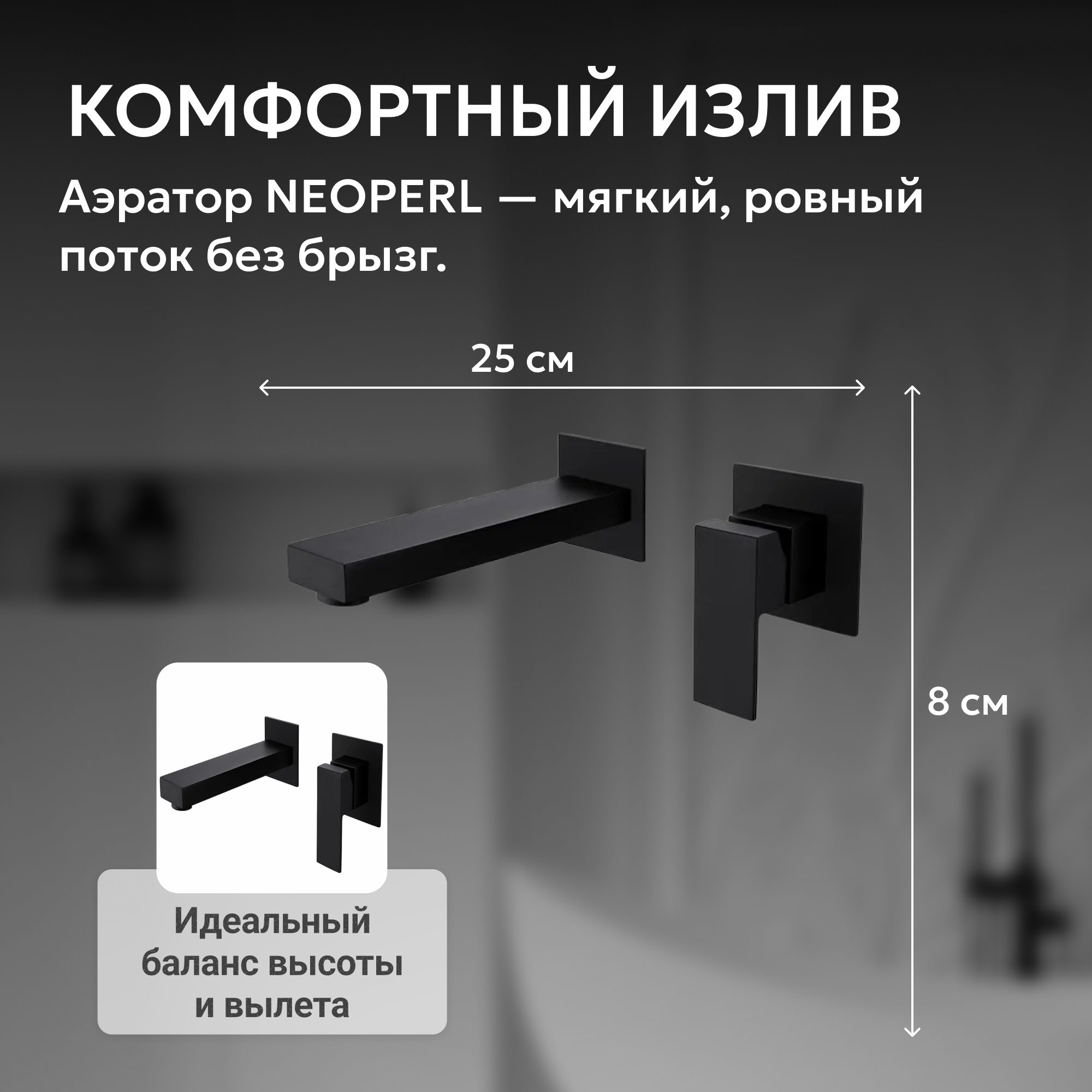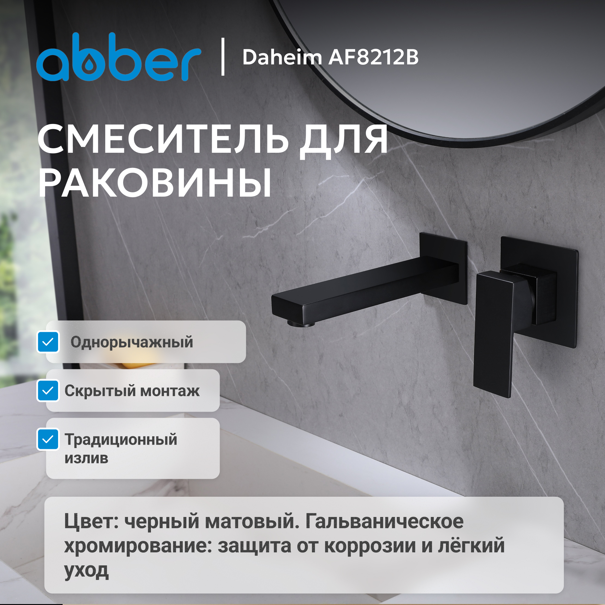 Смеситель ABBER Daheim AF8212B для раковины скрытого монтажа, черный матовый