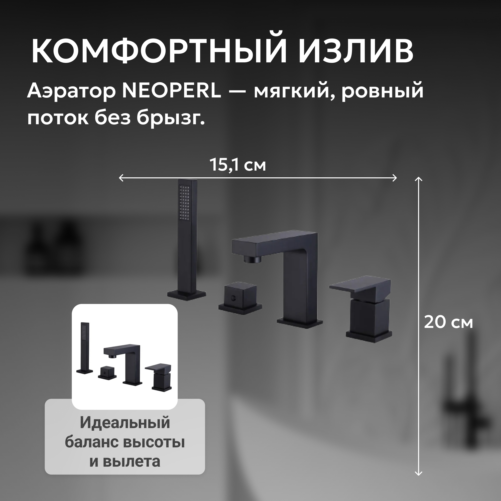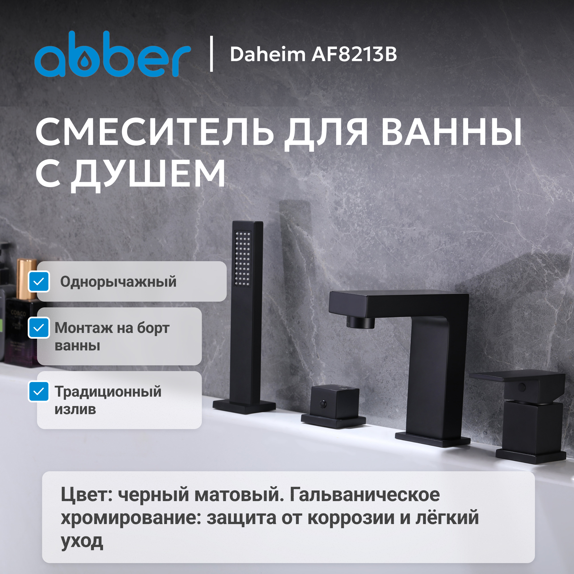Смеситель ABBER Daheim AF8213B на борт ванны, черный матовый