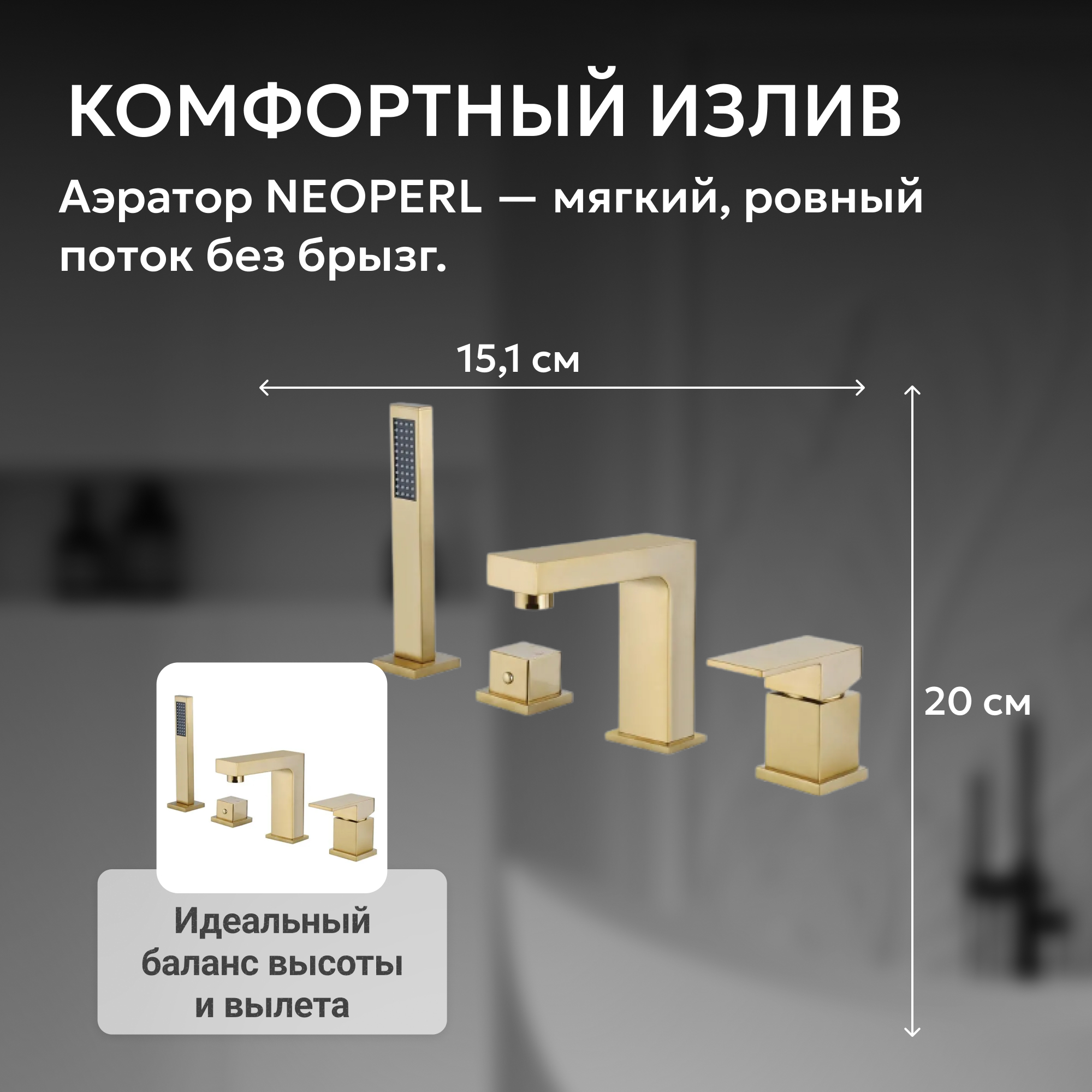 Смеситель ABBER Daheim AF8213G на борт ванны, золото матовое