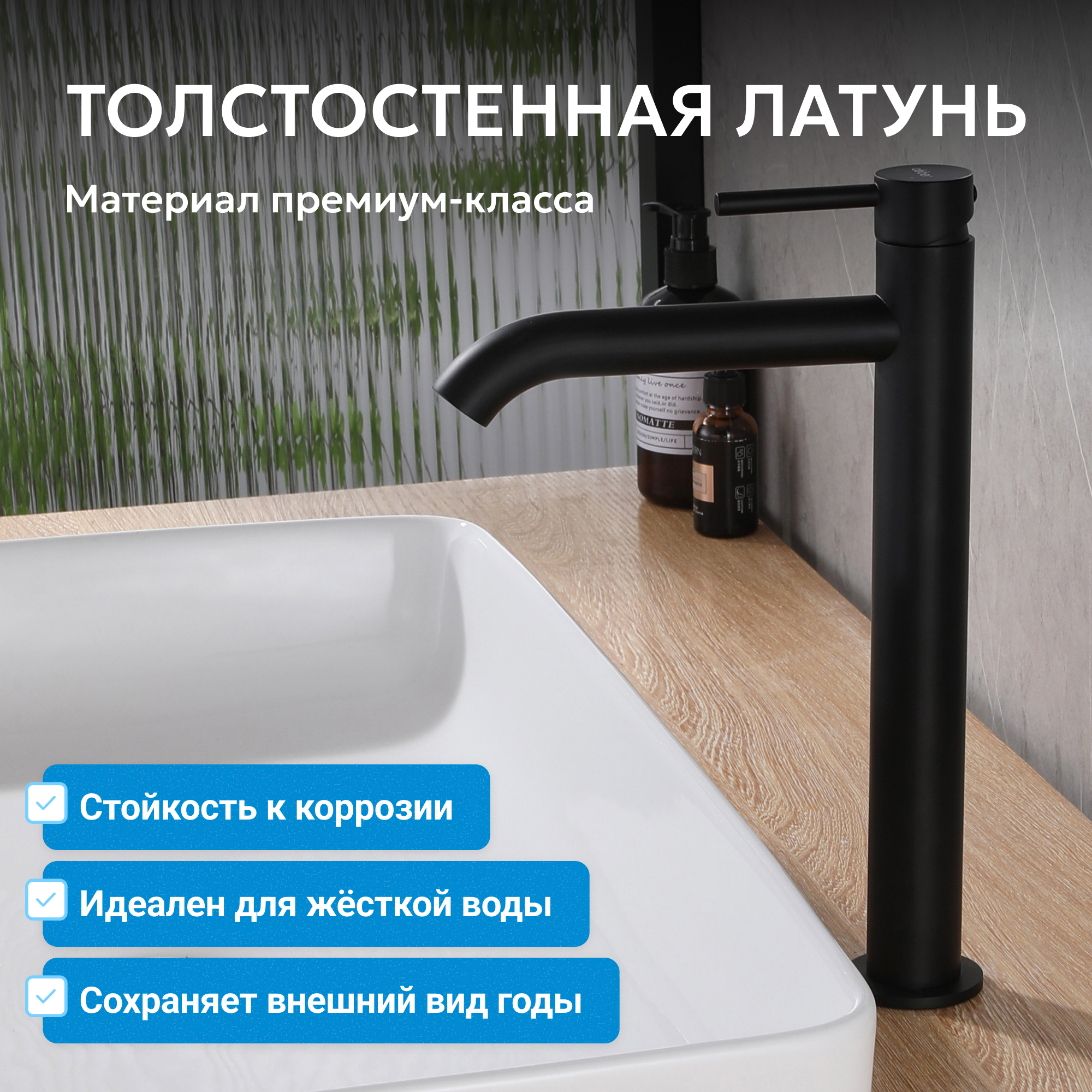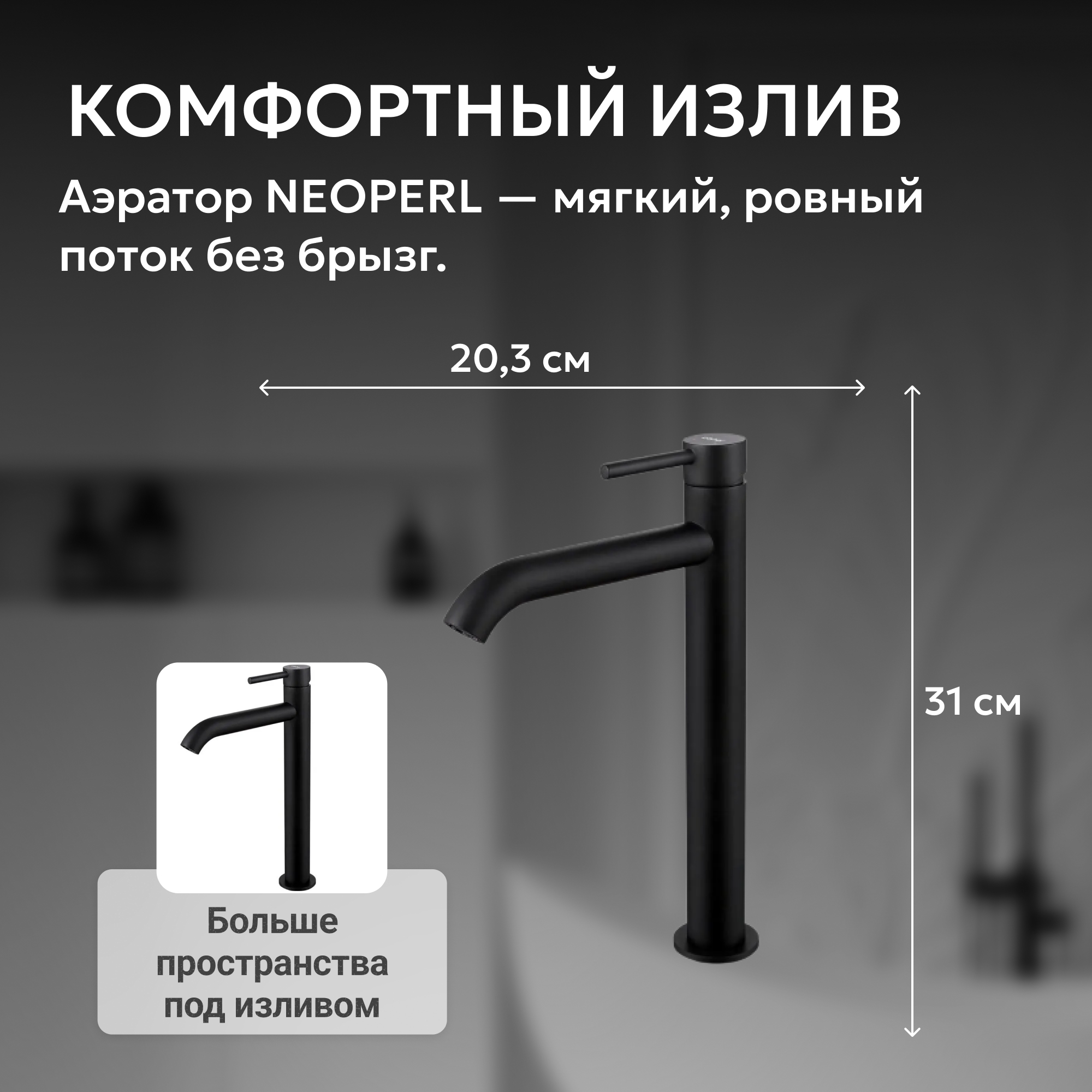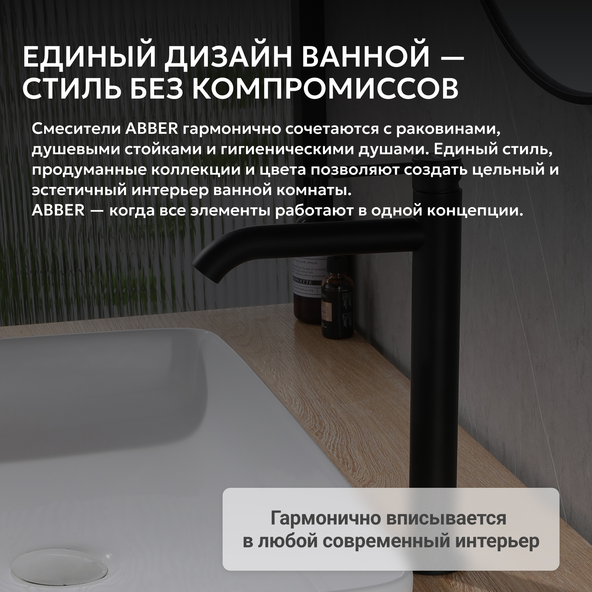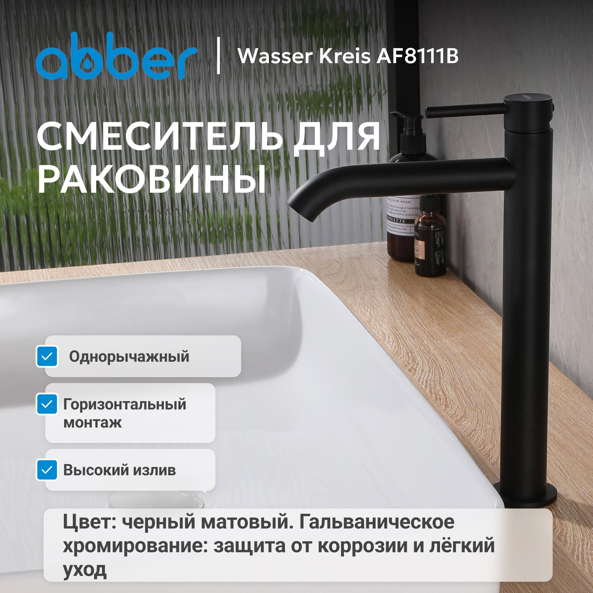 Смеситель ABBER Wasser Kreis AF8111B для накладной раковины, черный матовый