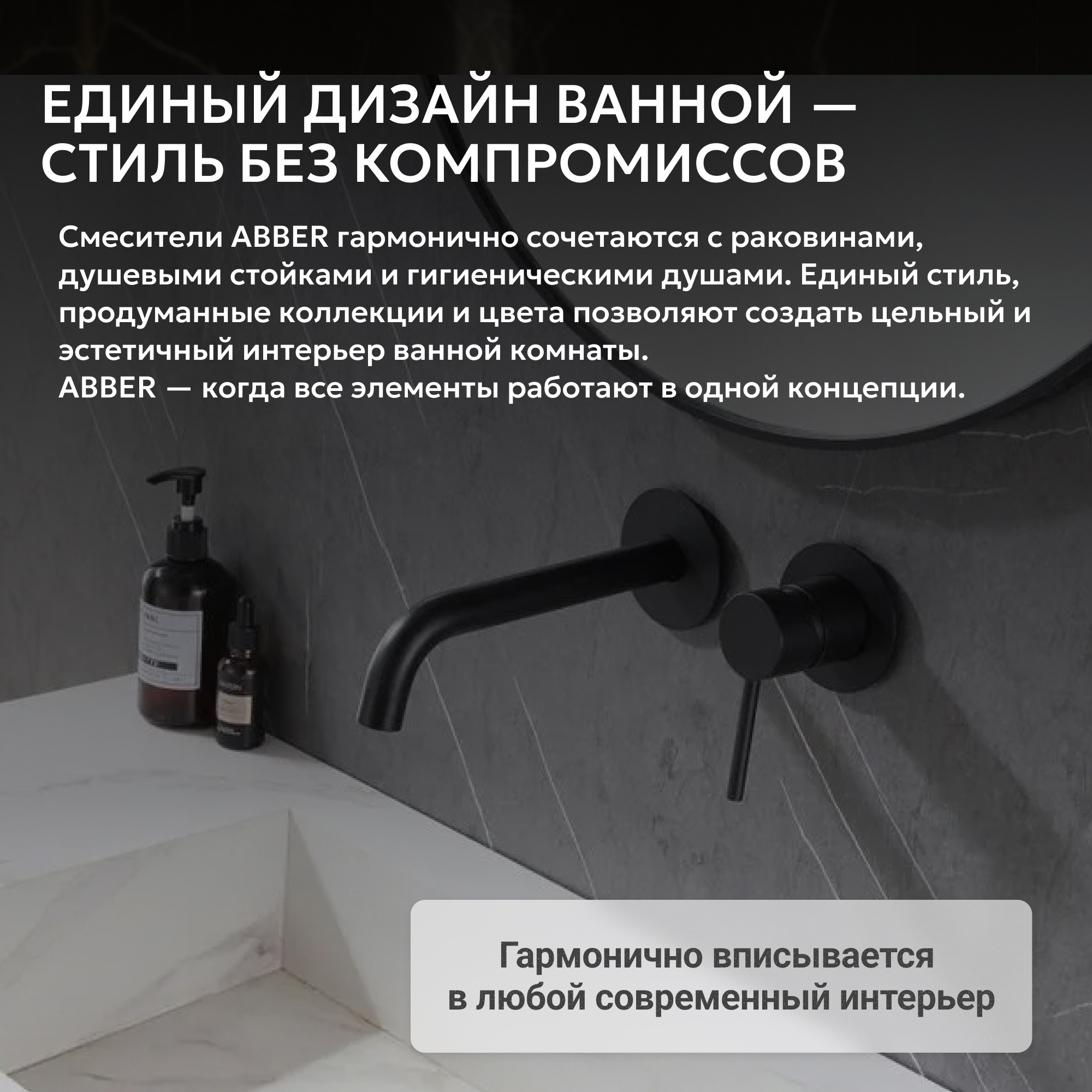 Смеситель ABBER Wasser Kreis AF8112B для раковины скрытого монтажа, черный матовый
