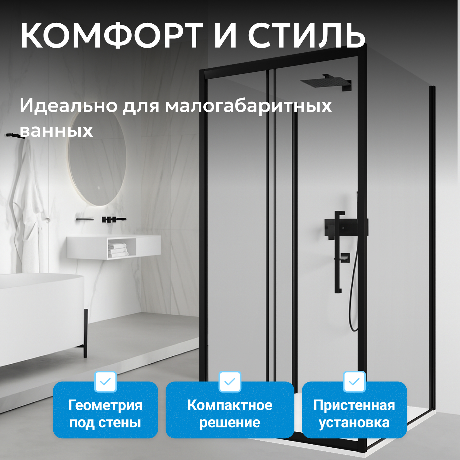 Совместимость с низкими поддонами (приобретаются отдельно) обеспечивает гибкость в сочетании с другими сантехническими элементами. Стекло не имеет водоотталкивающего покрытия и доводчиков, что облегчает уход. Брутто-вес конструкции — 110 кг. Предусмотрена гарантия 3 года. Сборка предполагает использование современных технологий для увеличения срока службы. Для ознакомления с деталями и размерами доступна 3D-модель.