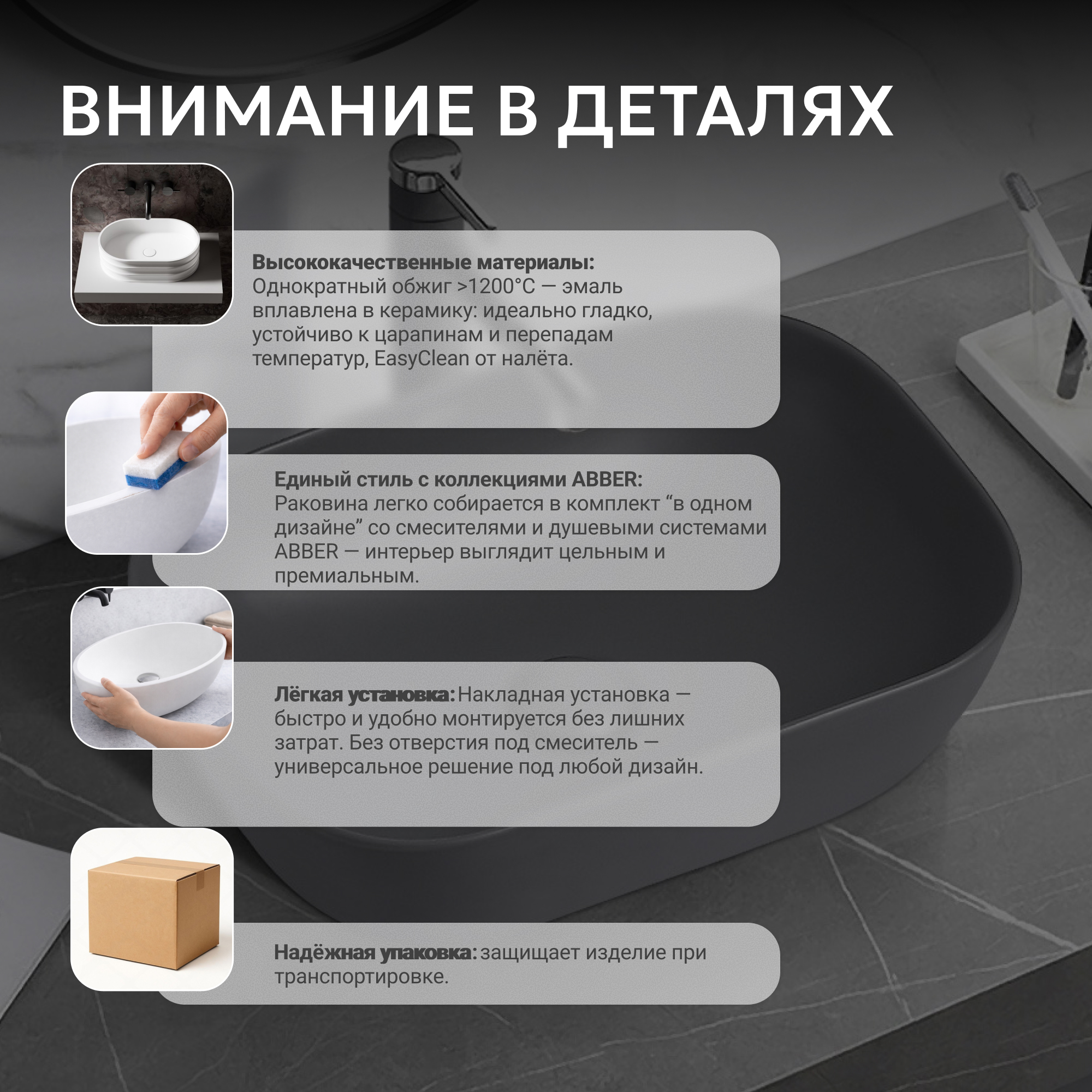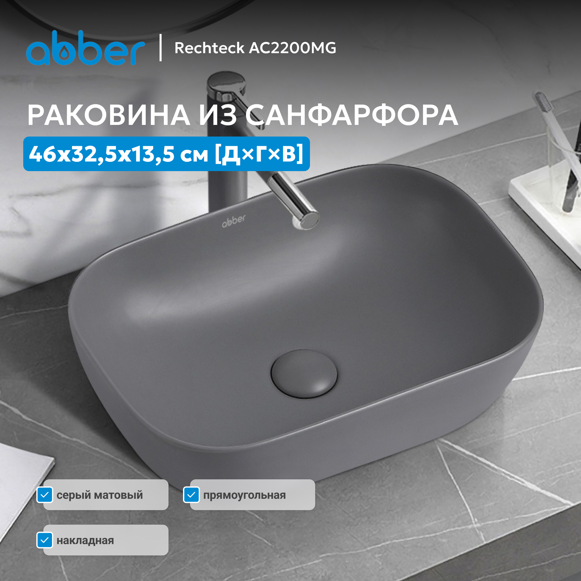 Раковина накладная ABBER Rechteck AC2200MG серая матовая
