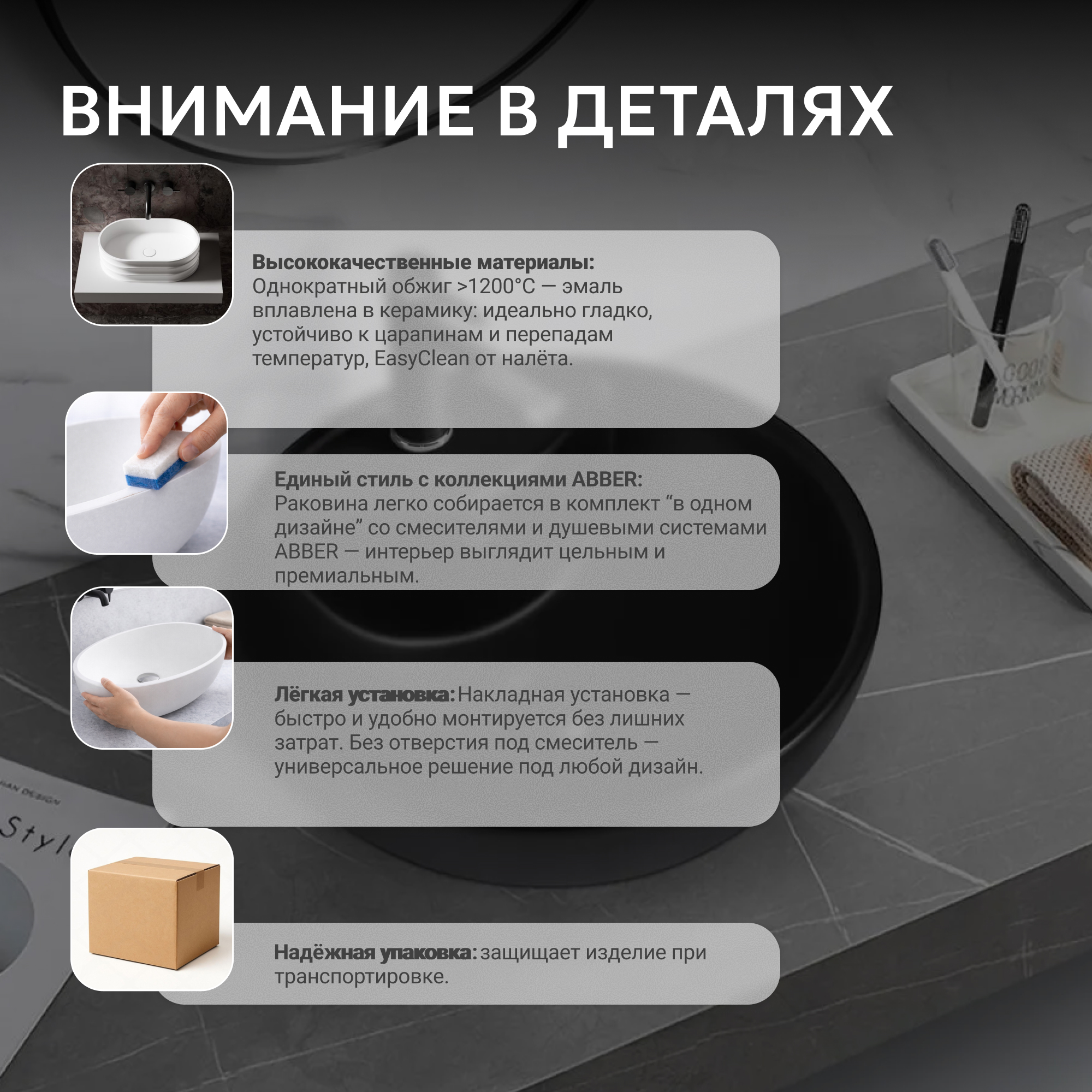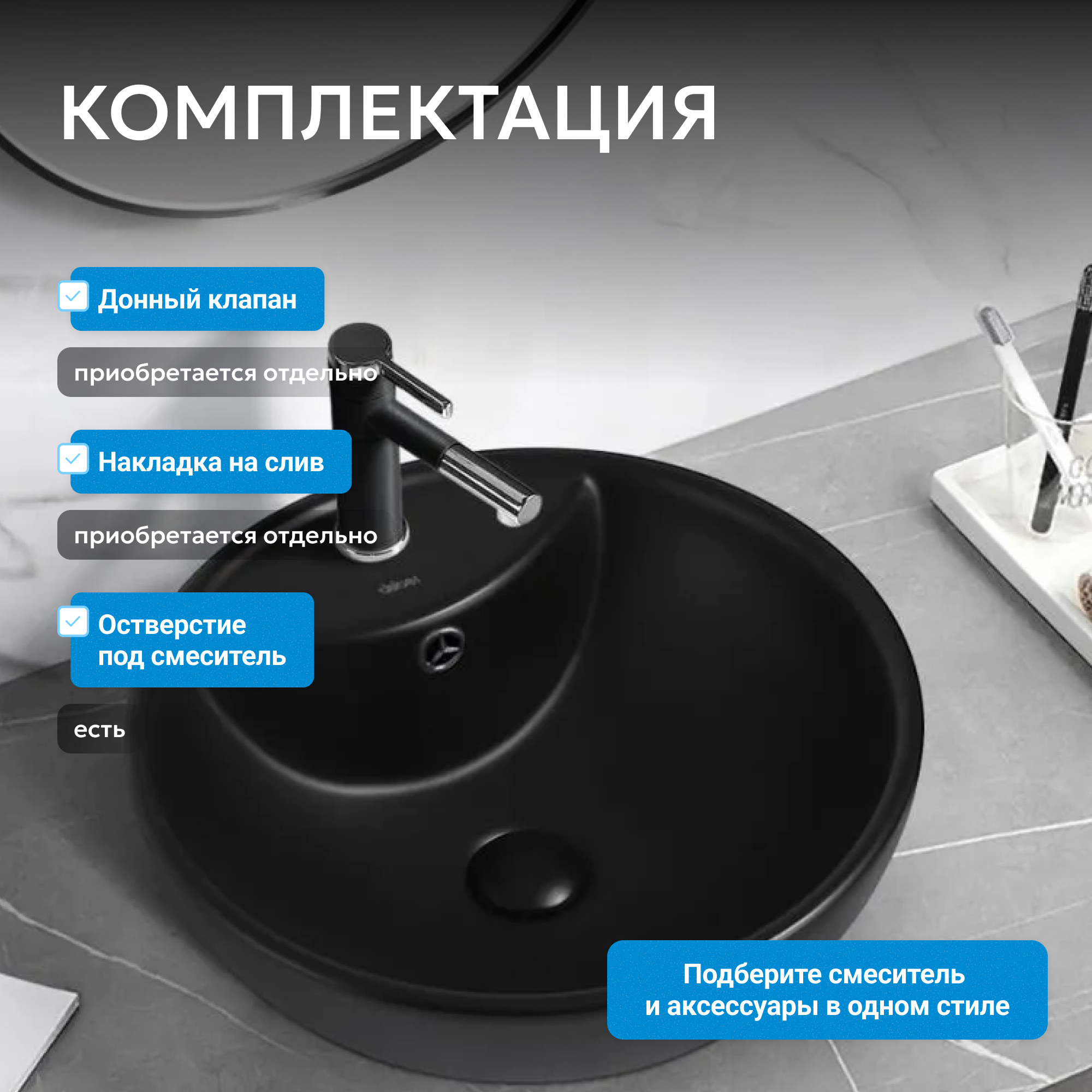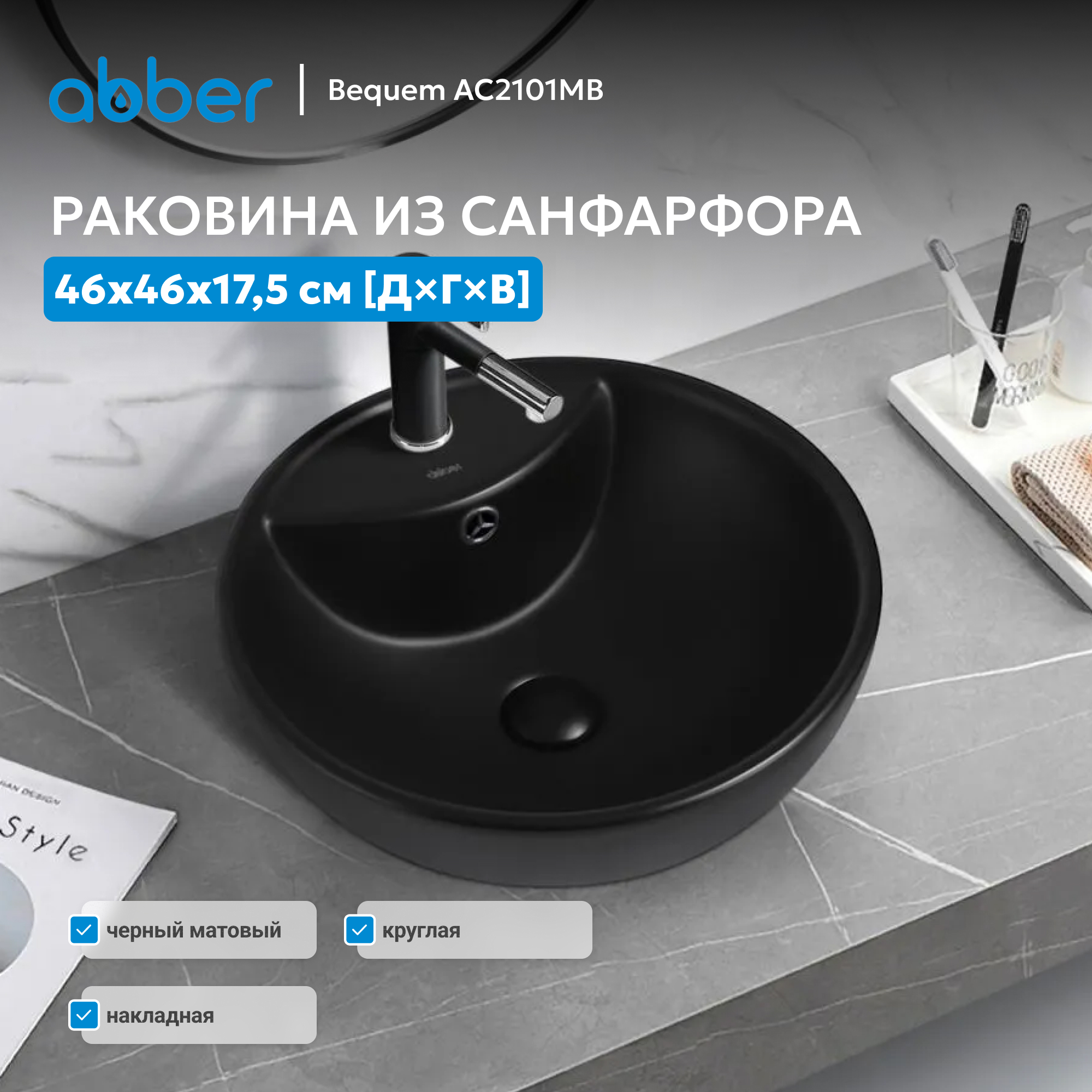 Раковина накладная ABBER Bequem AC2101MB черная матовая