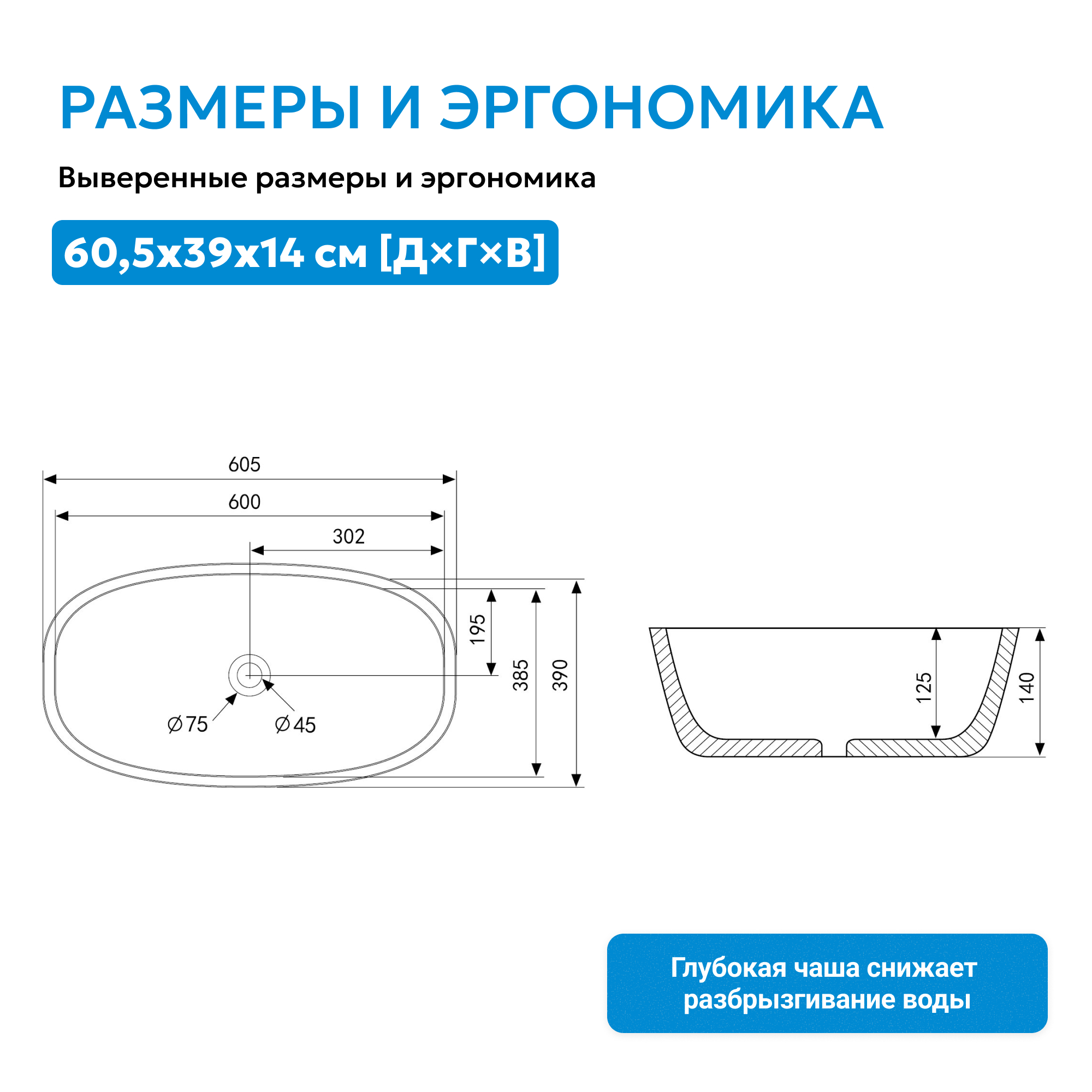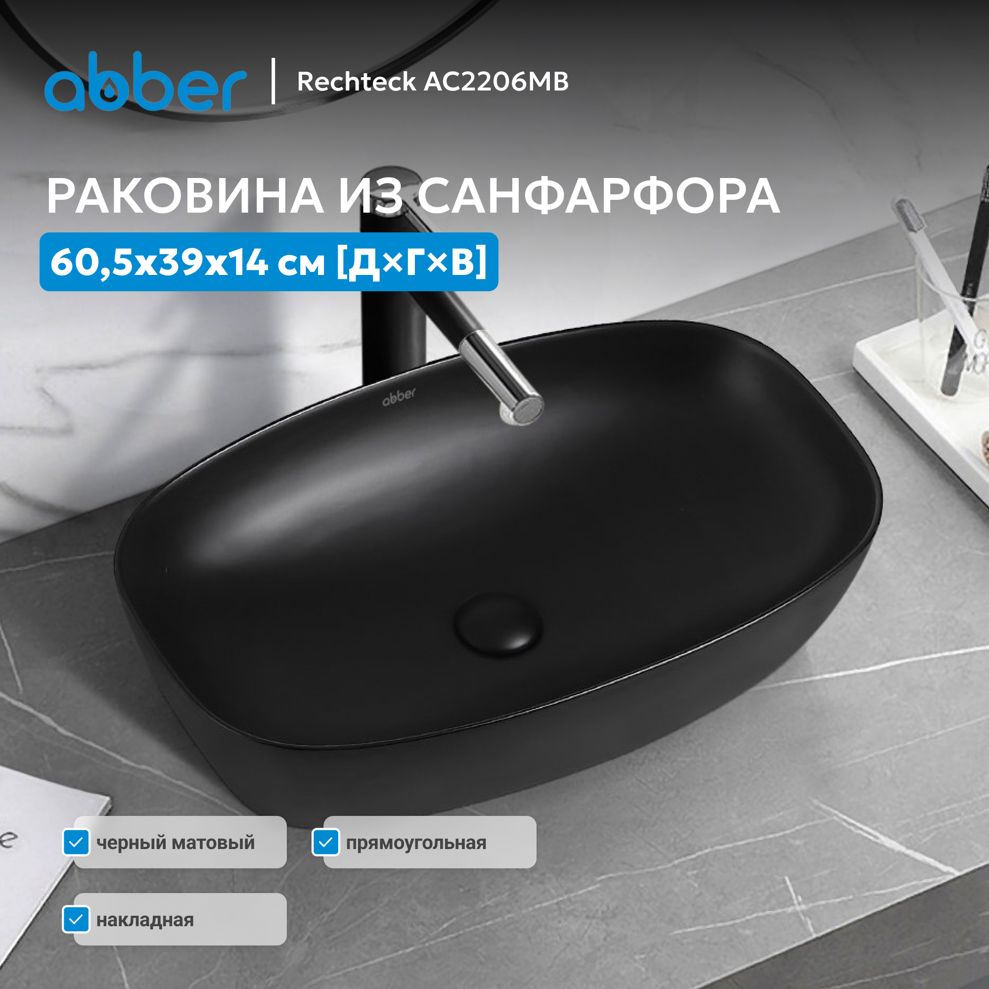 Раковина накладная ABBER Rechteck AC2206MB черная матовая