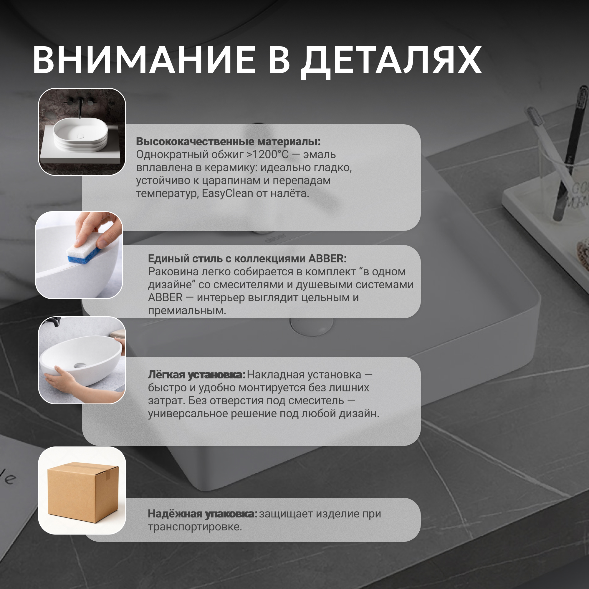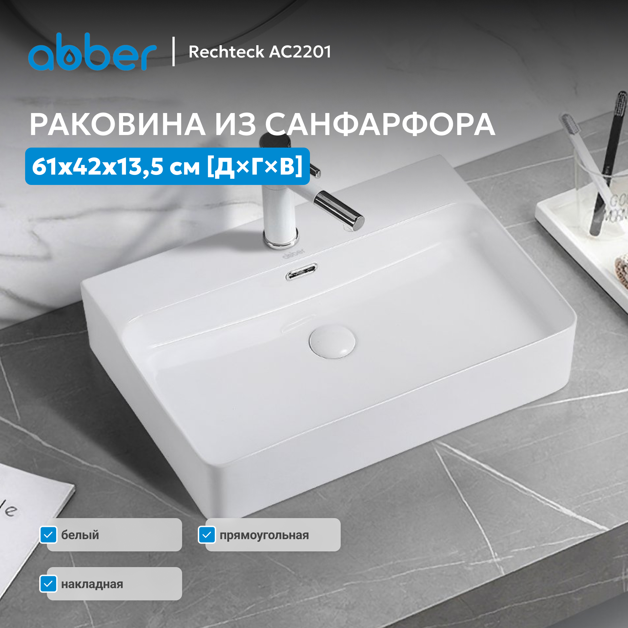 Раковина накладная ABBER Rechteck AC2201 белая
