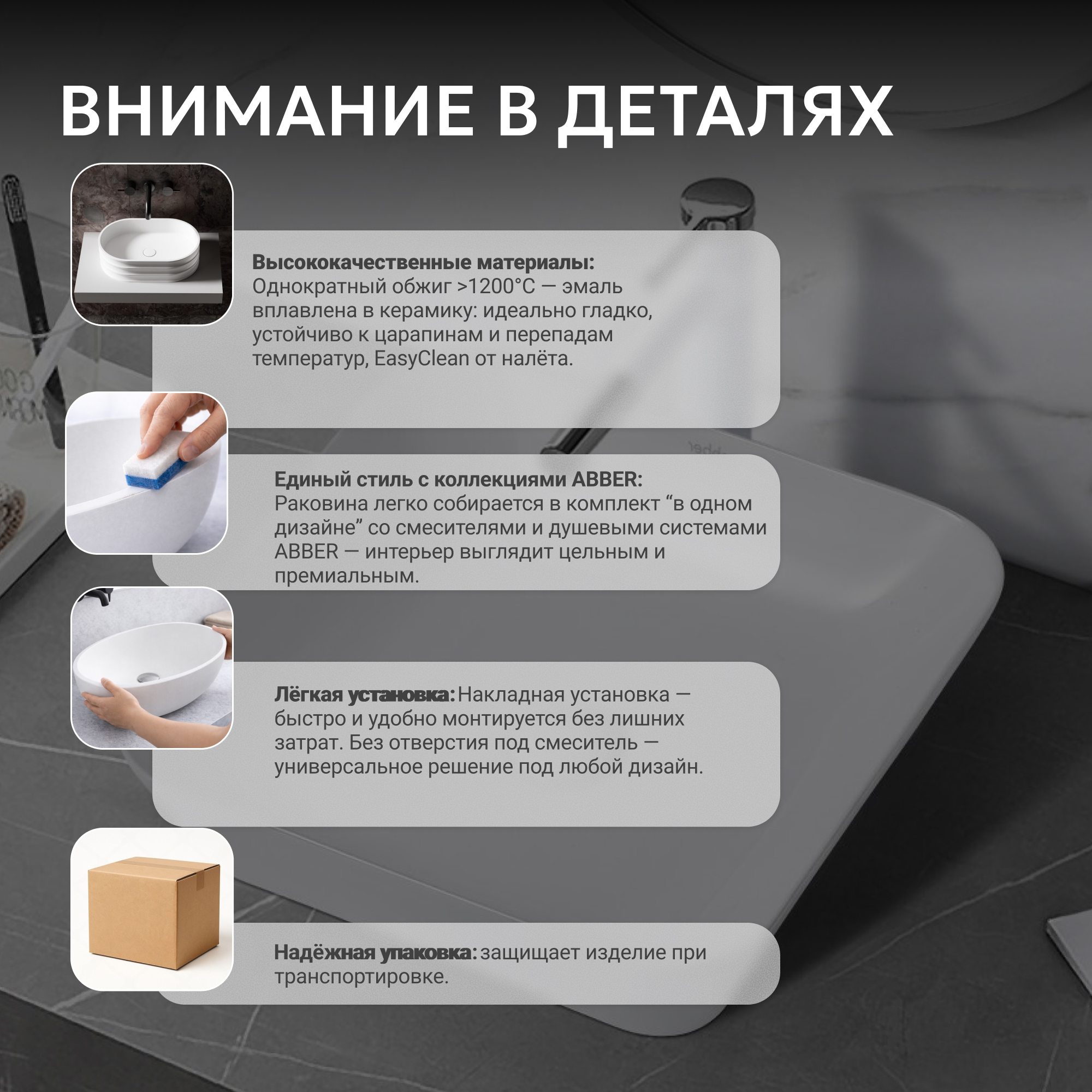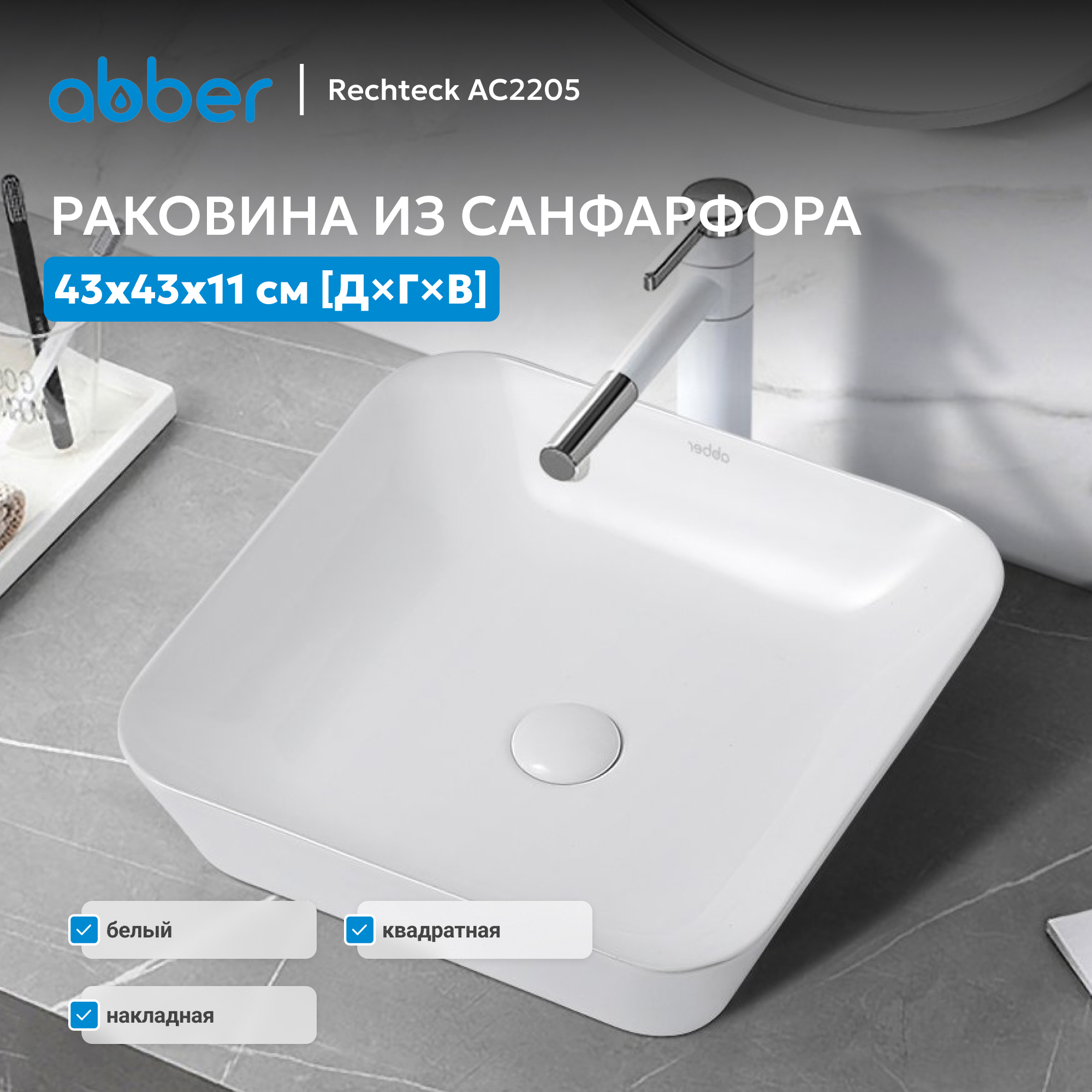 Раковина накладная ABBER Rechteck AC2205 белая