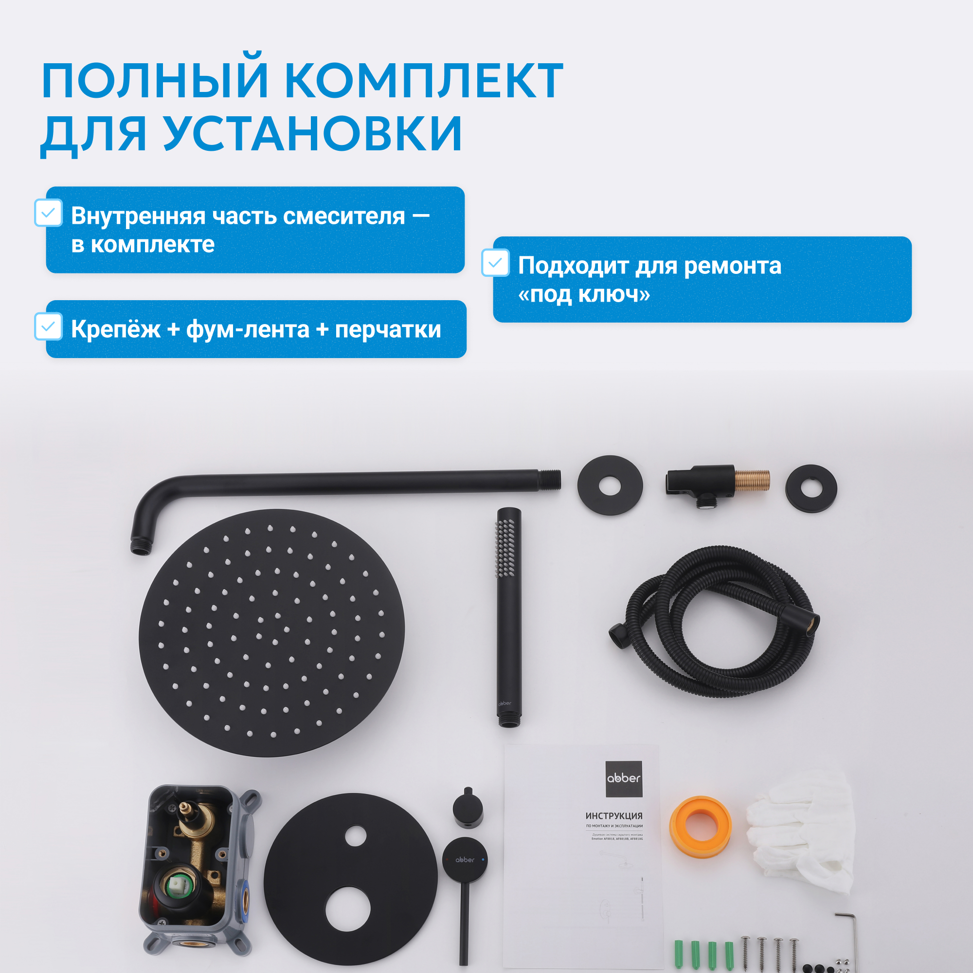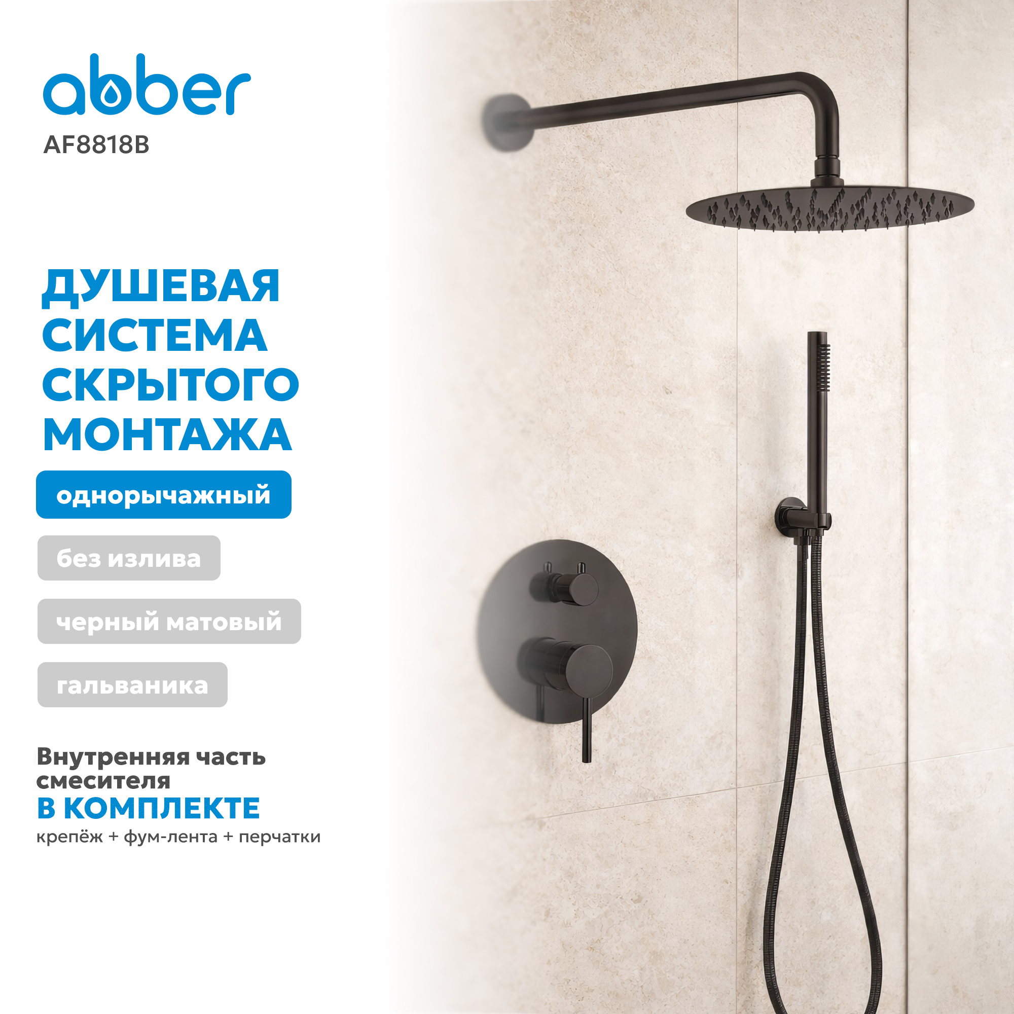 Душевая система ABBER Emotion AF8818B скрытого монтажа без излива, черная матовая