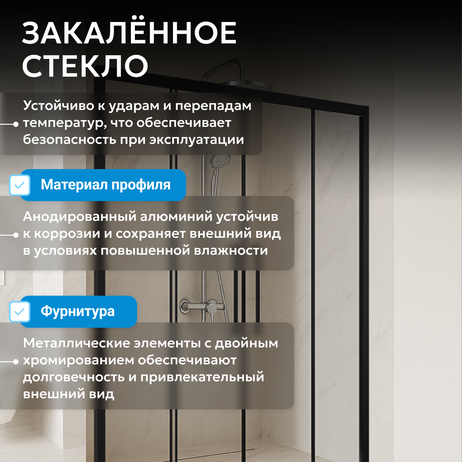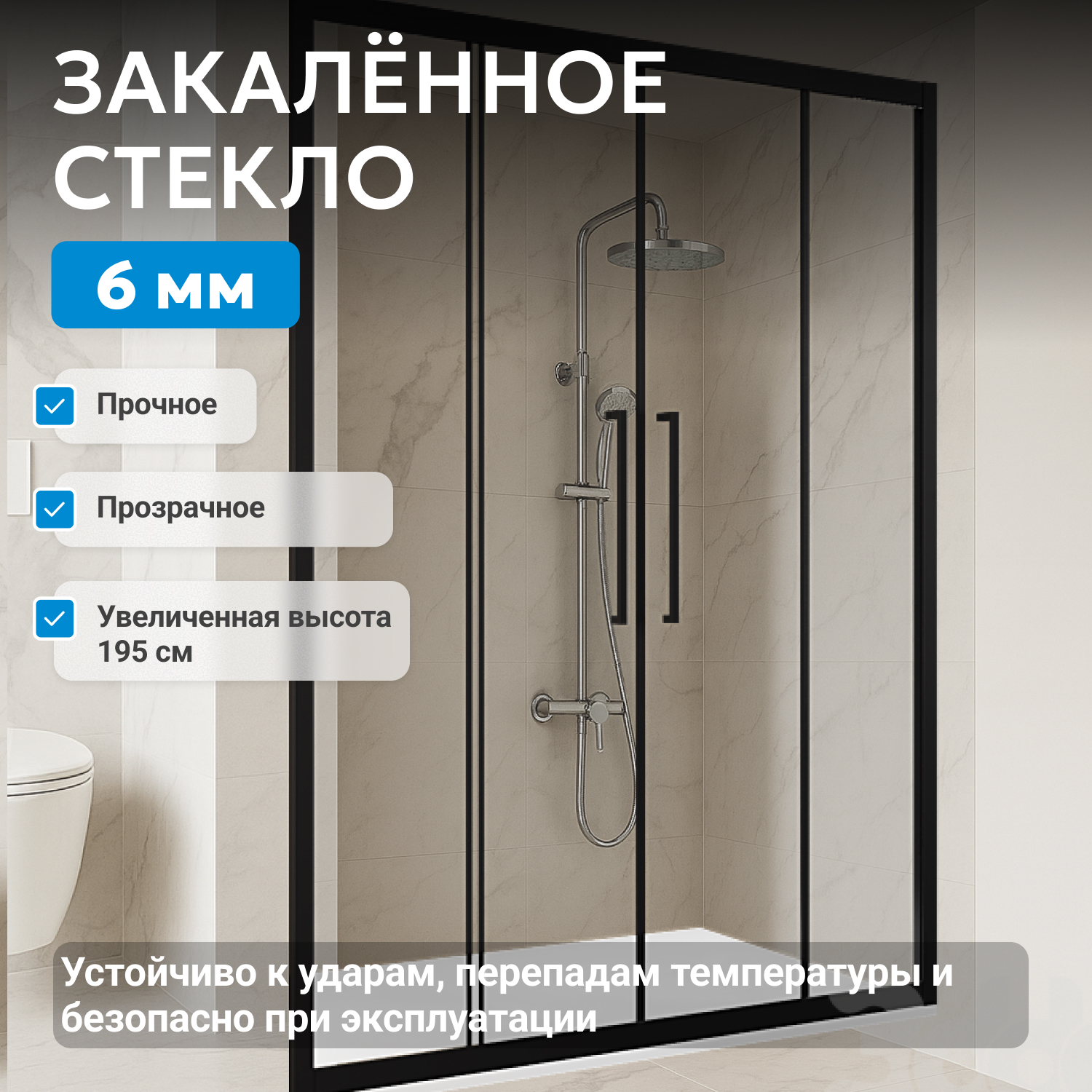 - закаленное, прозрачное стекло 6 мм