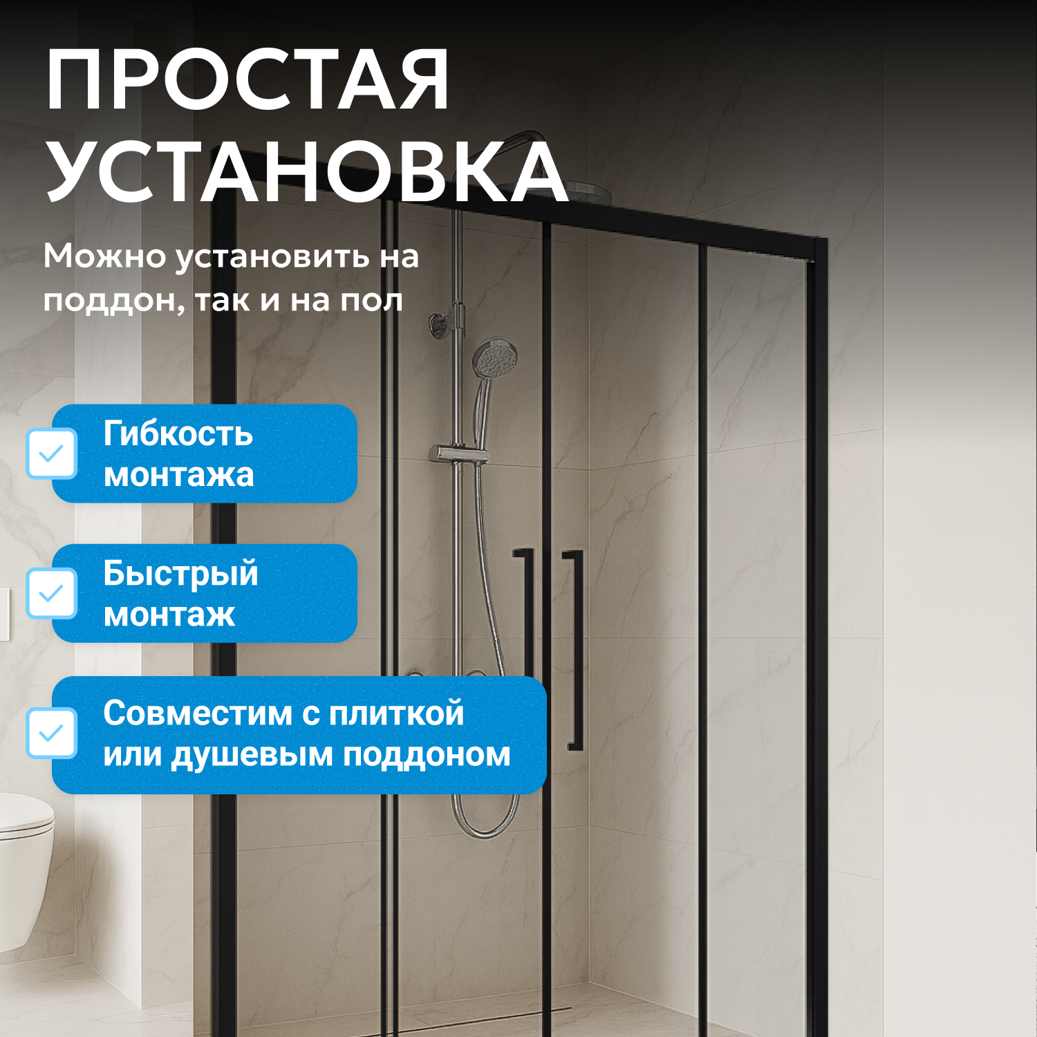 - возможна установка на пол и на поддон, поддон приобретается отдельно