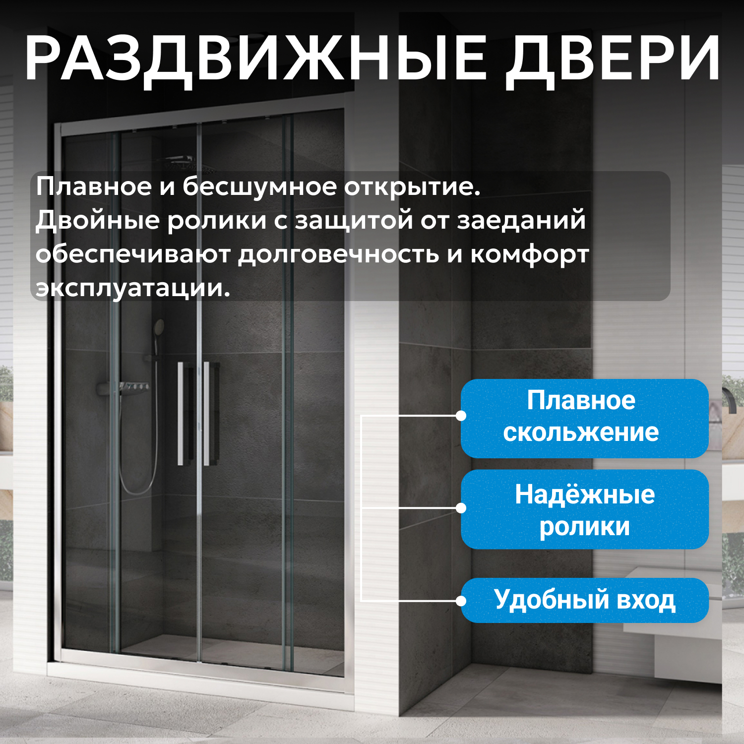 Душевые двери ABBER изготавливаются из анодированного алюминиевого профиля и закалённого, ударопрочного стекла. Также стеклянные душевые двери обладают рядом преимуществ: они легко моются, надежны и долговечны в эксплуатации.