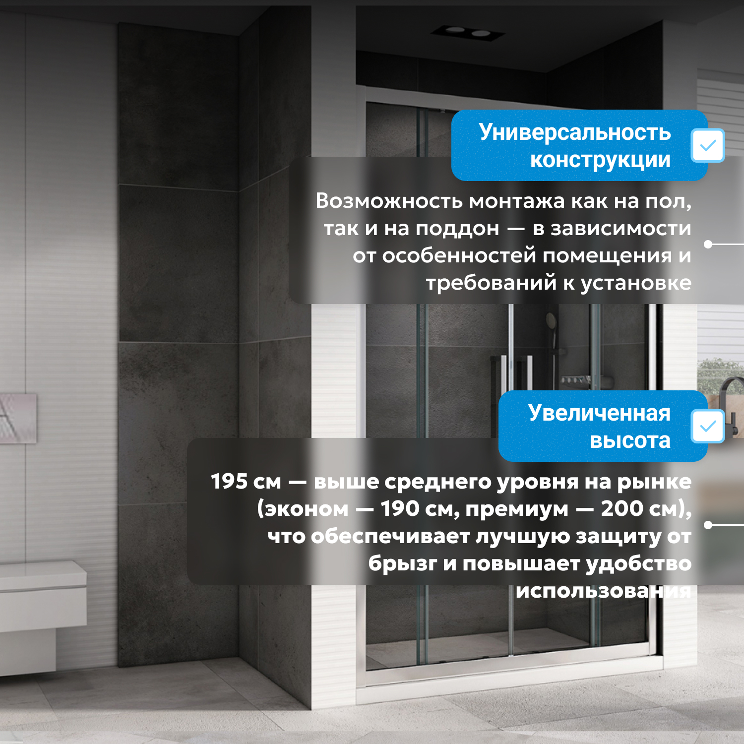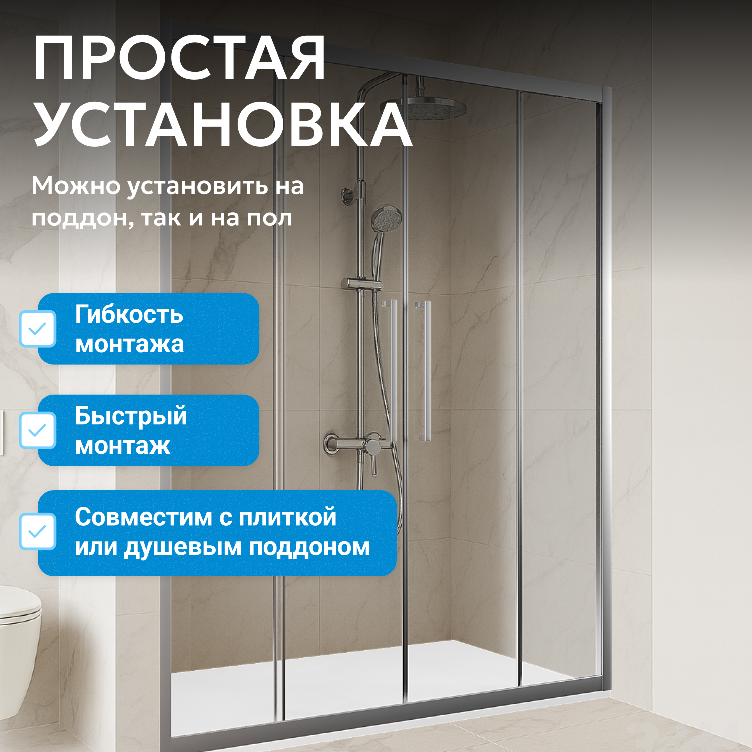- возможна установка на пол и на поддон, поддон приобретается отдельно