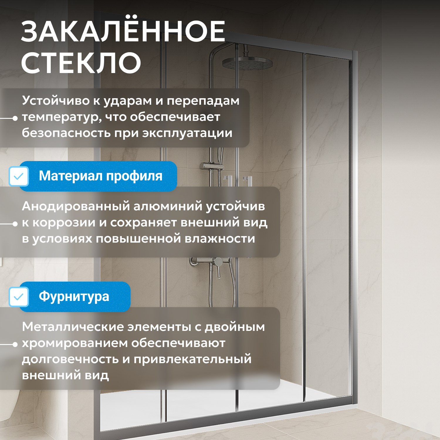 - закаленное, прозрачное стекло 6 мм