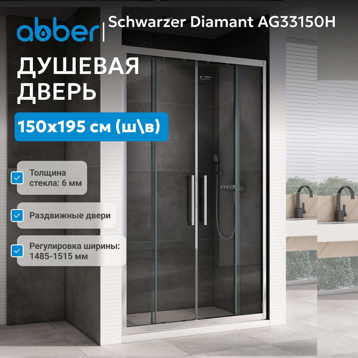 Душевая дверь ABBER Schwarzer Diamant AG33150H