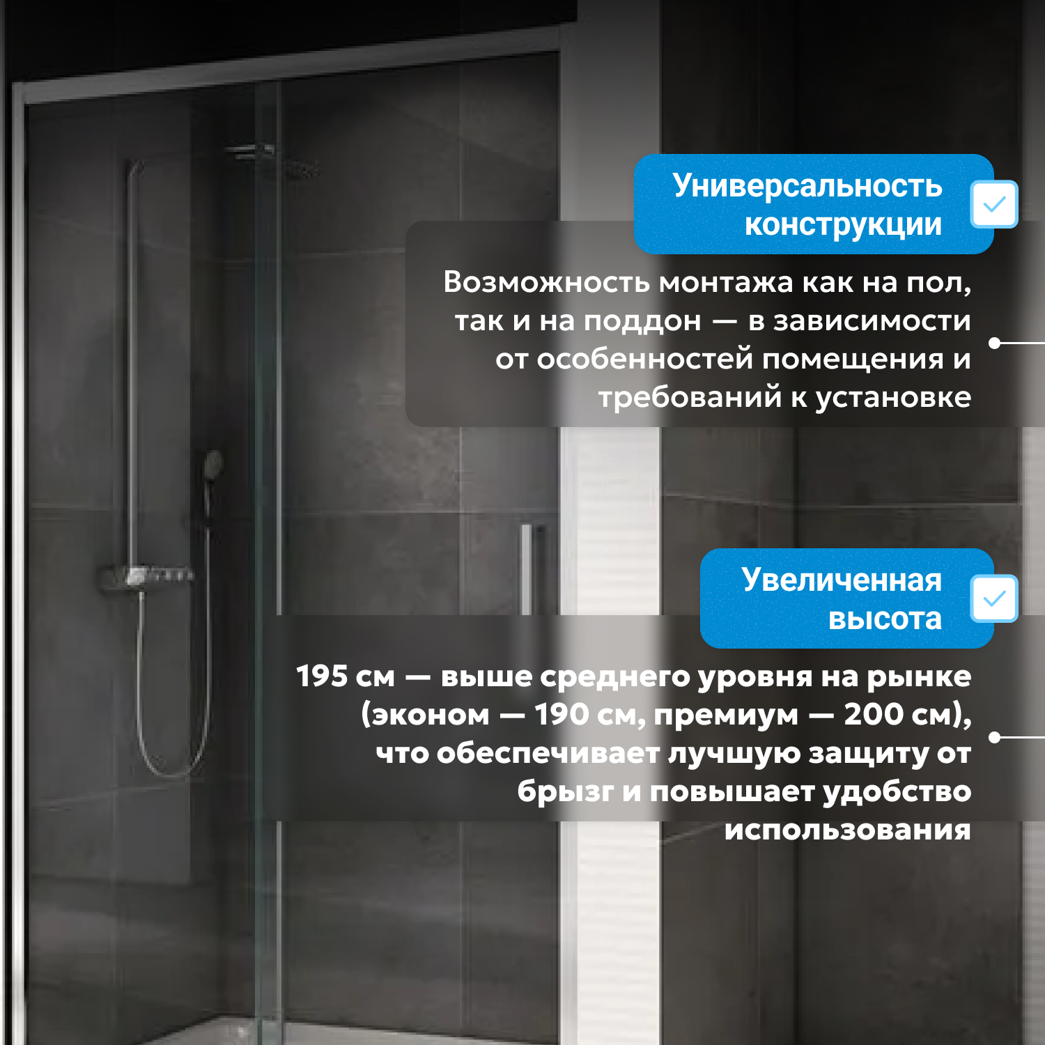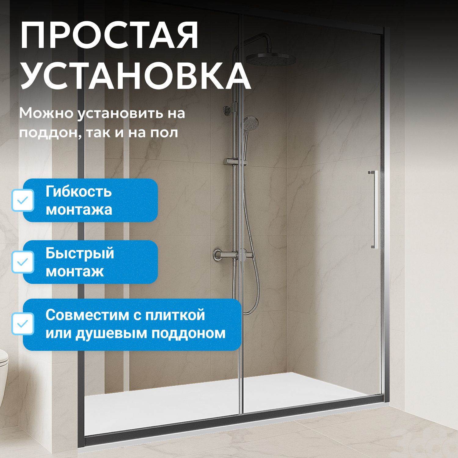 - возможна установка на пол и на поддон, поддон приобретается отдельно