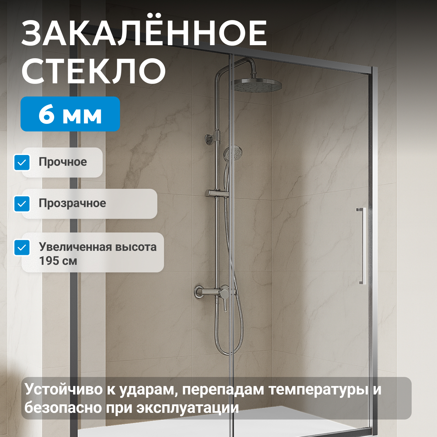 - закаленное, прозрачное стекло 6 мм
