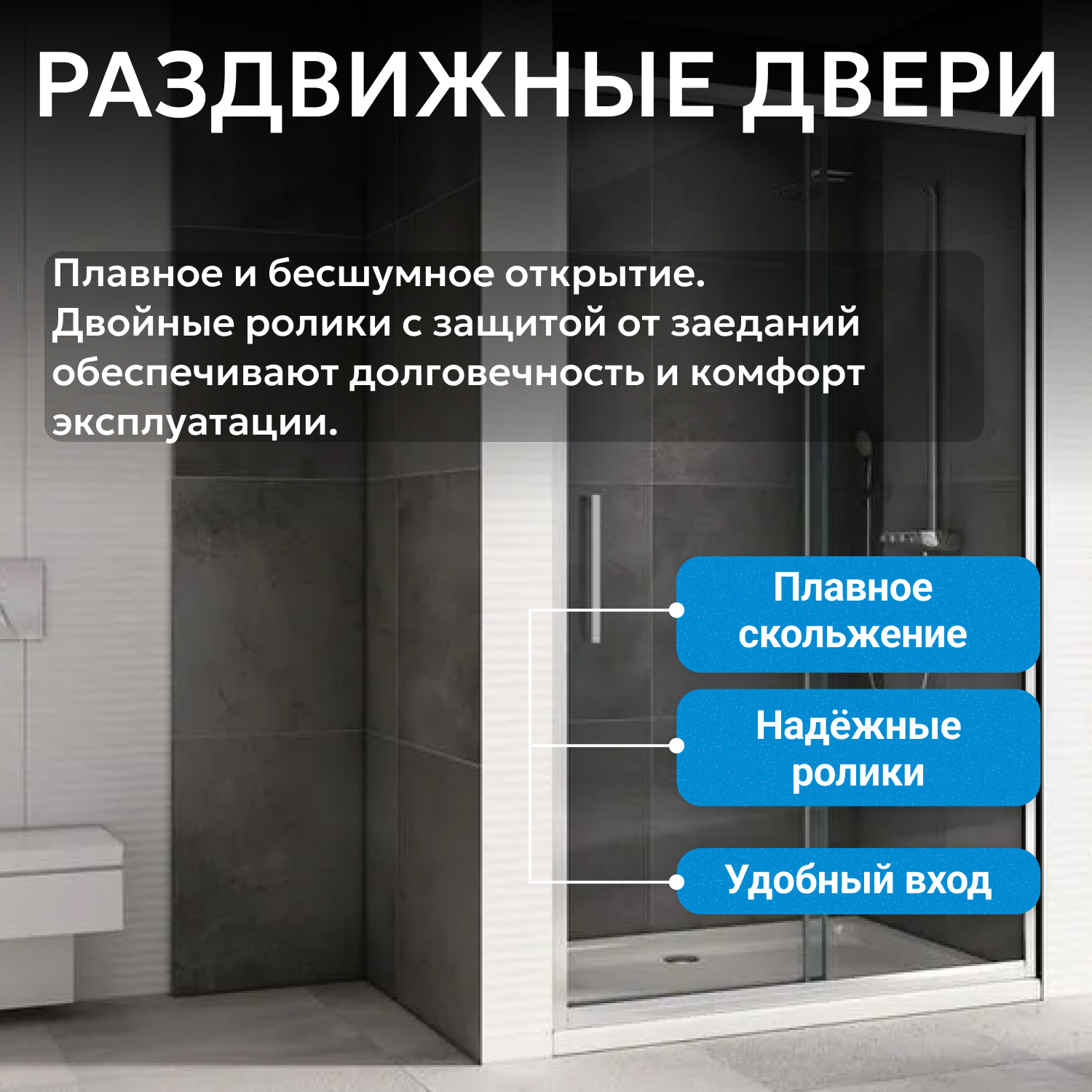 Душевые двери ABBER изготавливаются из анодированного алюминиевого профиля и закалённого, ударопрочного стекла. Также стеклянные душевые двери обладают рядом преимуществ: они легко моются, надежны и долговечны в эксплуатации.