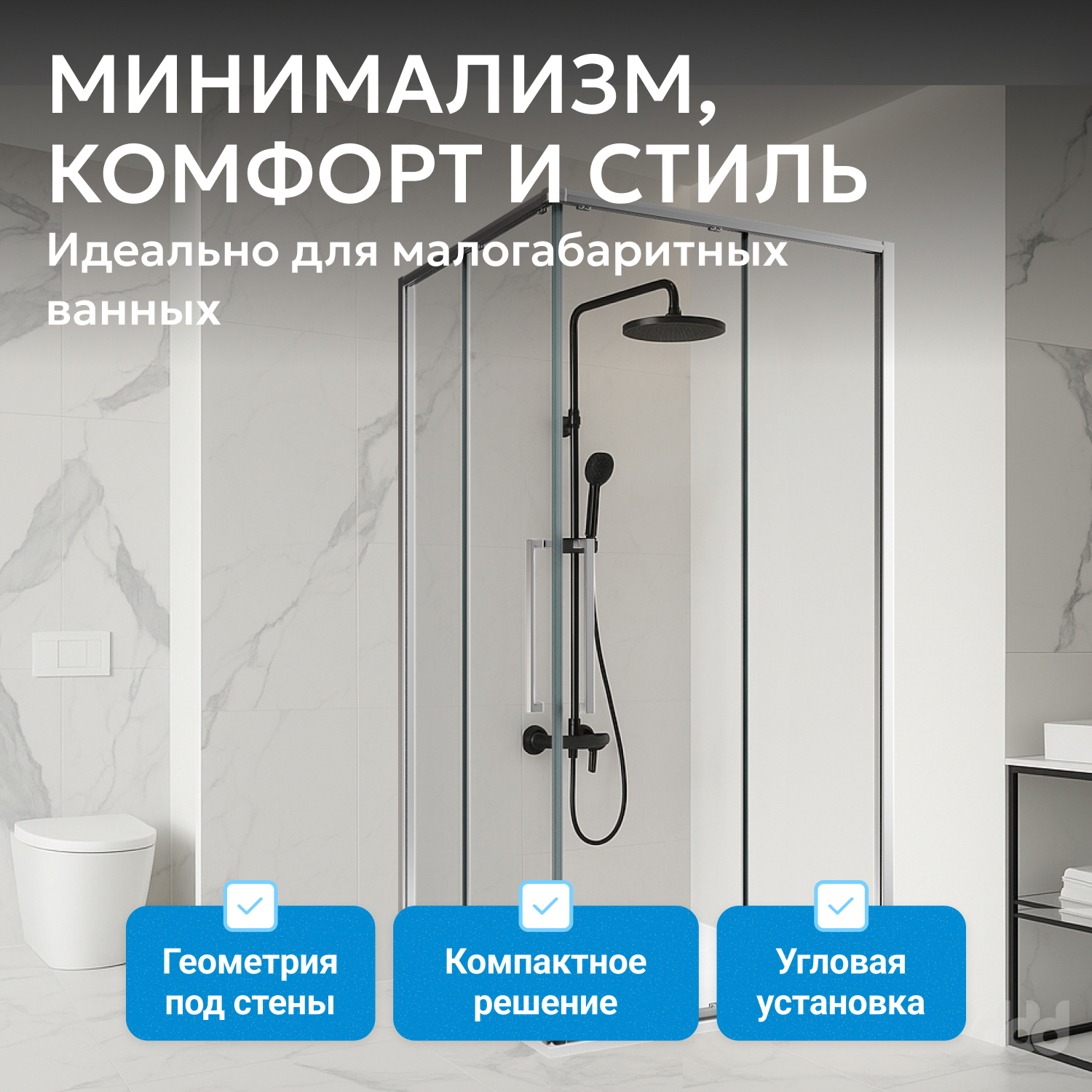 Квадратная форма и размеры 90×90 см при высоте 195 см позволяют эффективно использовать пространство санузла. Вариант без встроенного поддона предоставляет свободу выбора с учетом особенностей ремонта. Прозрачные закалённые стекла толщиной 6 мм визуально расширяют помещение, легко очищаются и сохраняют внешний вид.