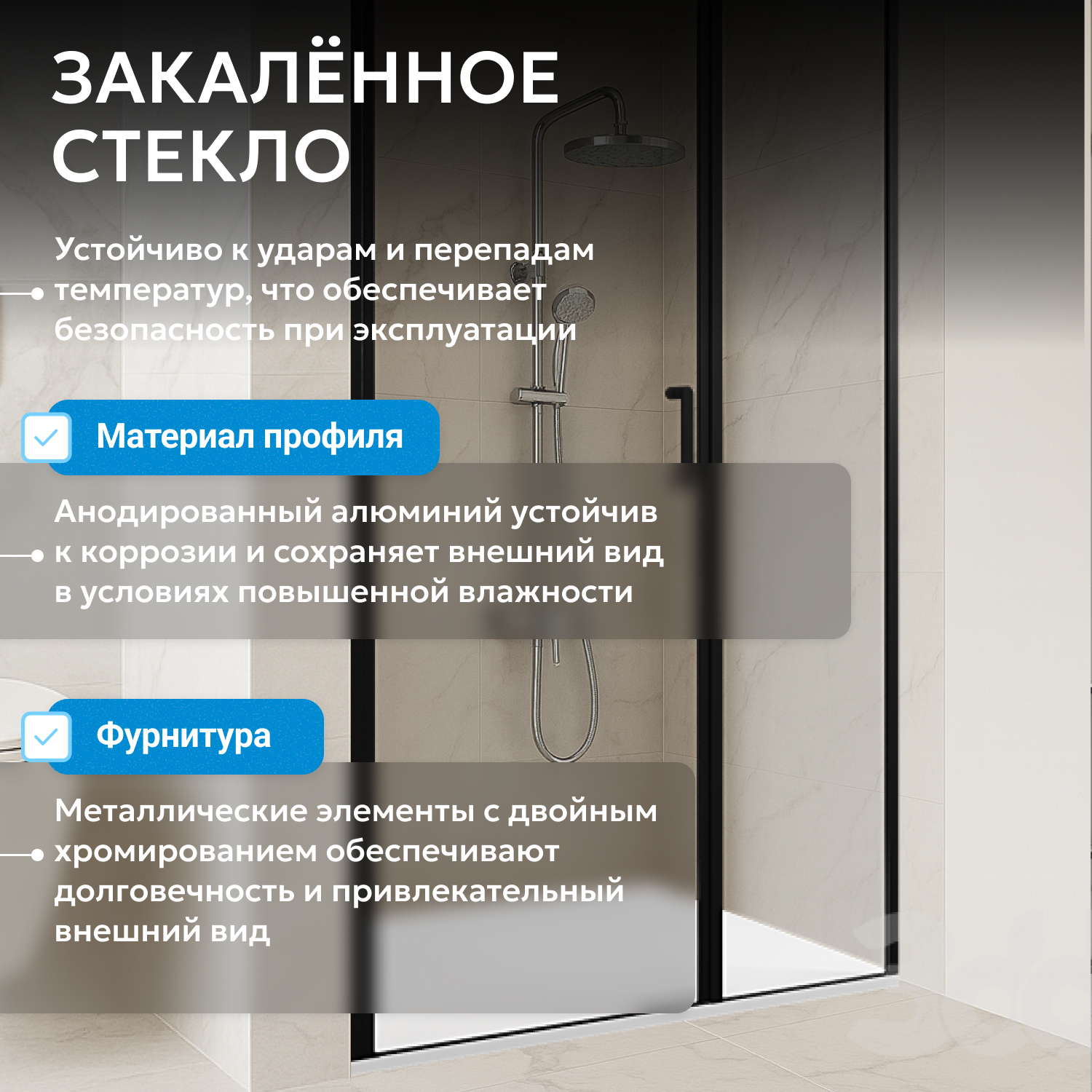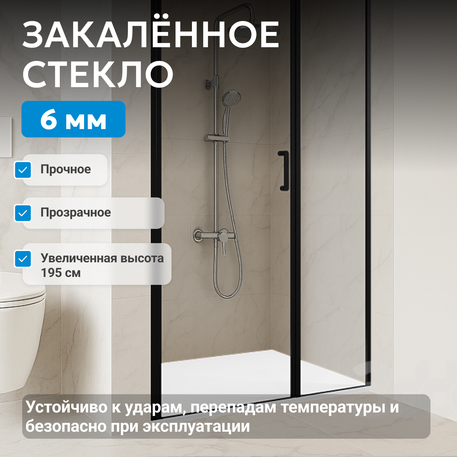 - закаленное, прозрачное стекло 6 мм