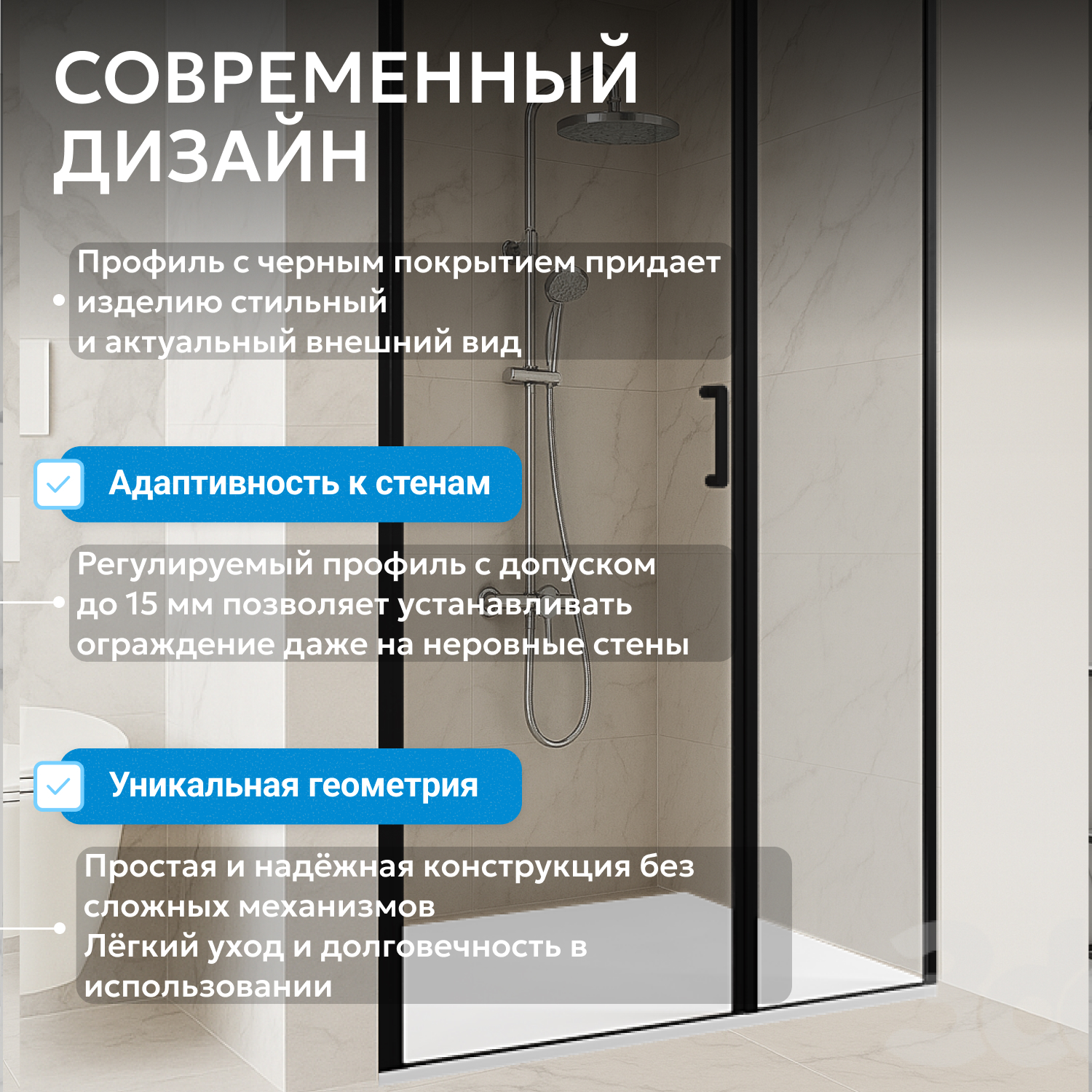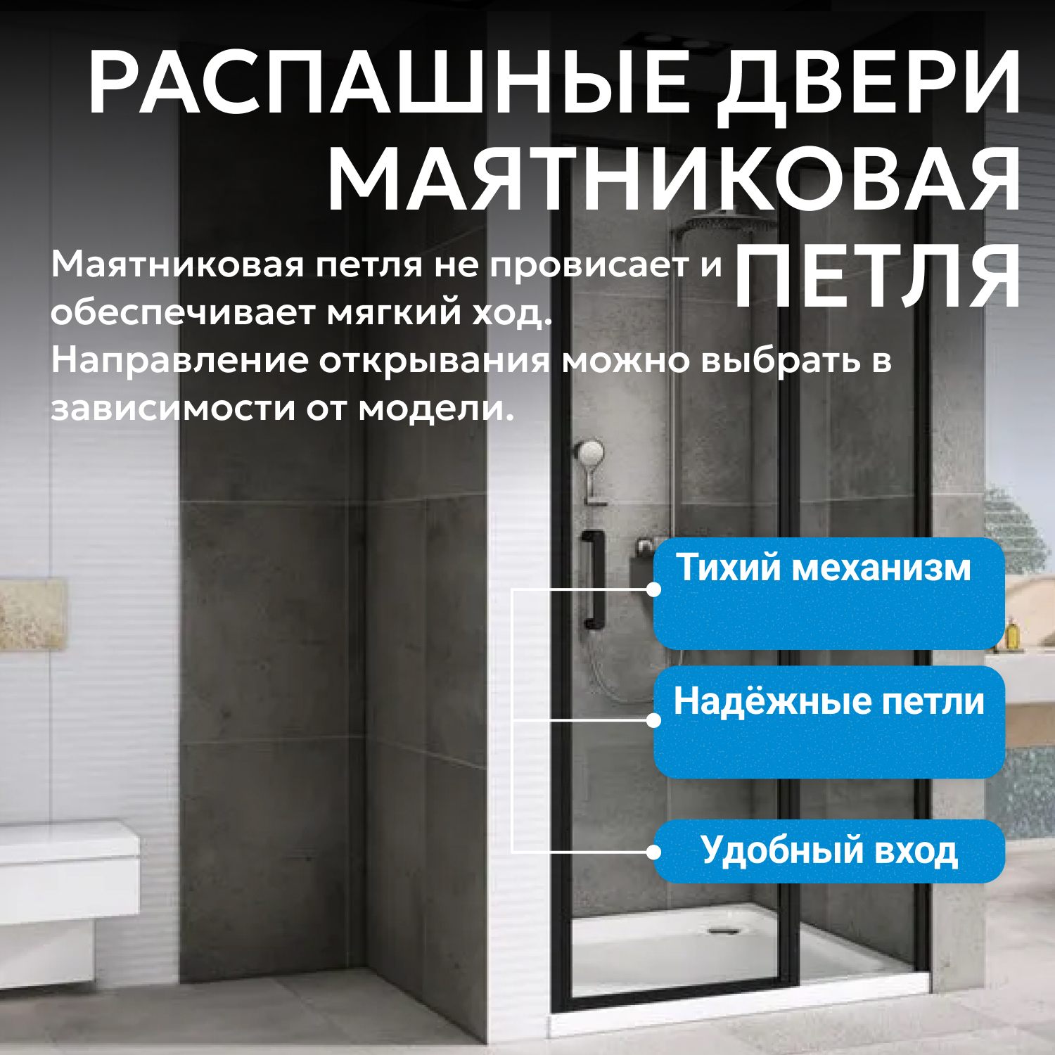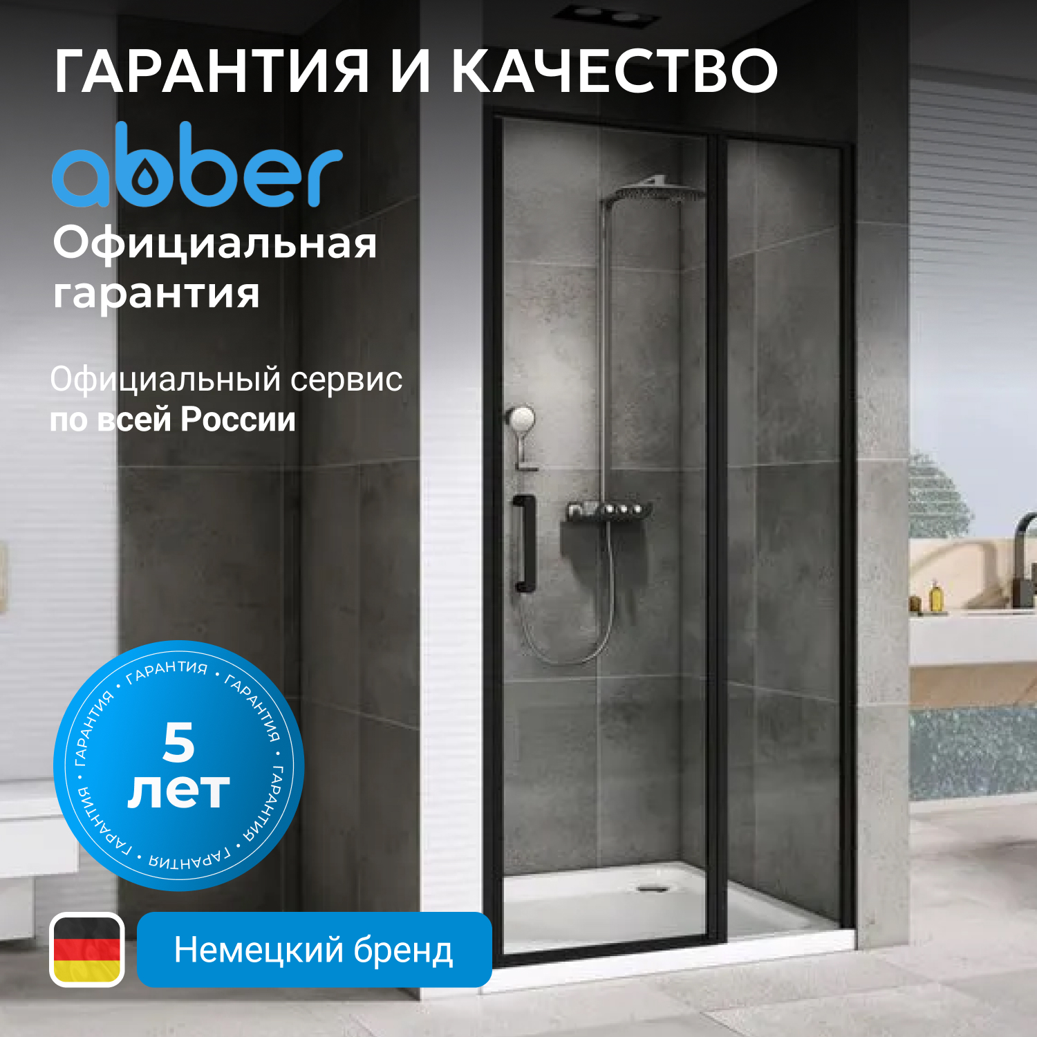 Душевые двери ABBER изготавливаются из алюминиевого профиля, окрашенного порошковой краской и закалённого, ударопрочного стекла. Также стеклянные душевые двери обладают рядом преимуществ: они легко моются, надежны и долговечны в эксплуатации.
