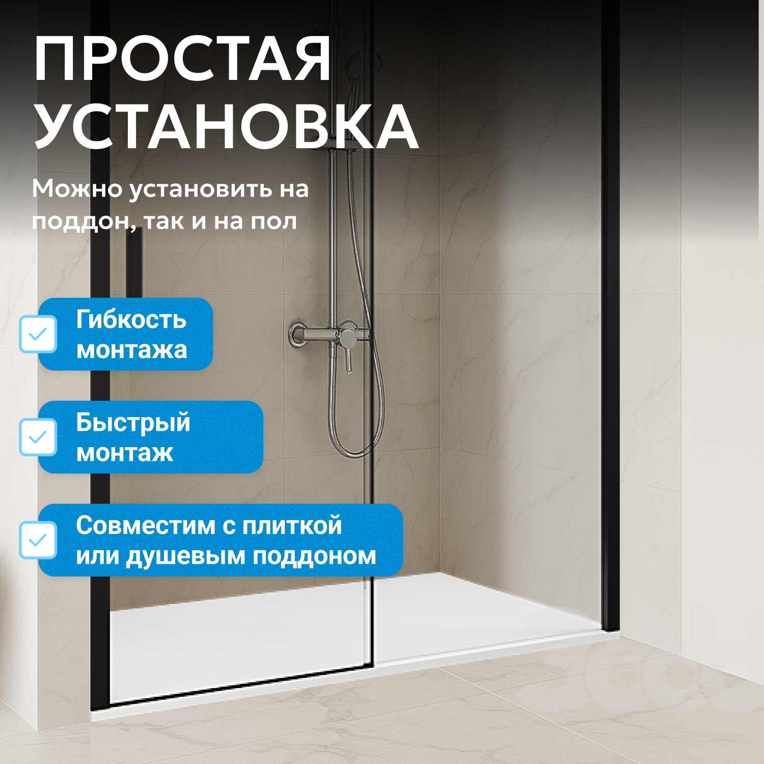 - возможна установка на пол и на поддон, поддон приобретается отдельно
