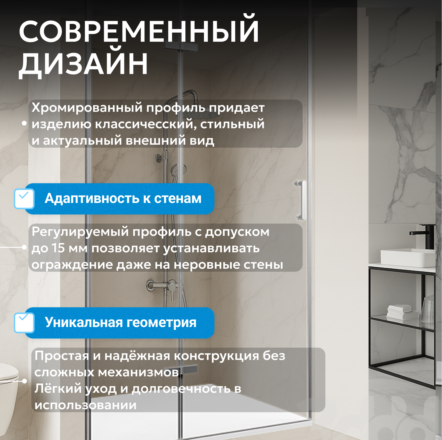 Душевые двери ABBER изготавливаются из анодированного алюминиевого профиля и закалённого, ударопрочного стекла. Также стеклянные душевые двери обладают рядом преимуществ: они легко моются, надежны и долговечны в эксплуатации.