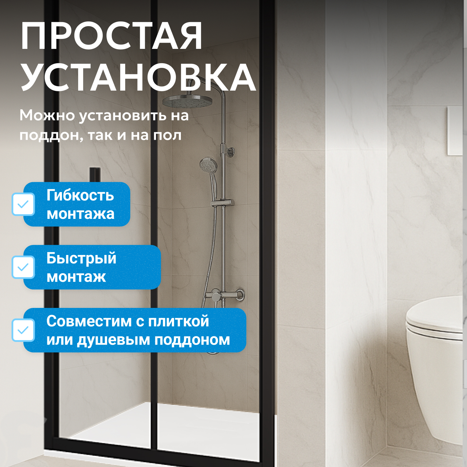 - возможна установка на пол и на поддон, поддон приобретается отдельно