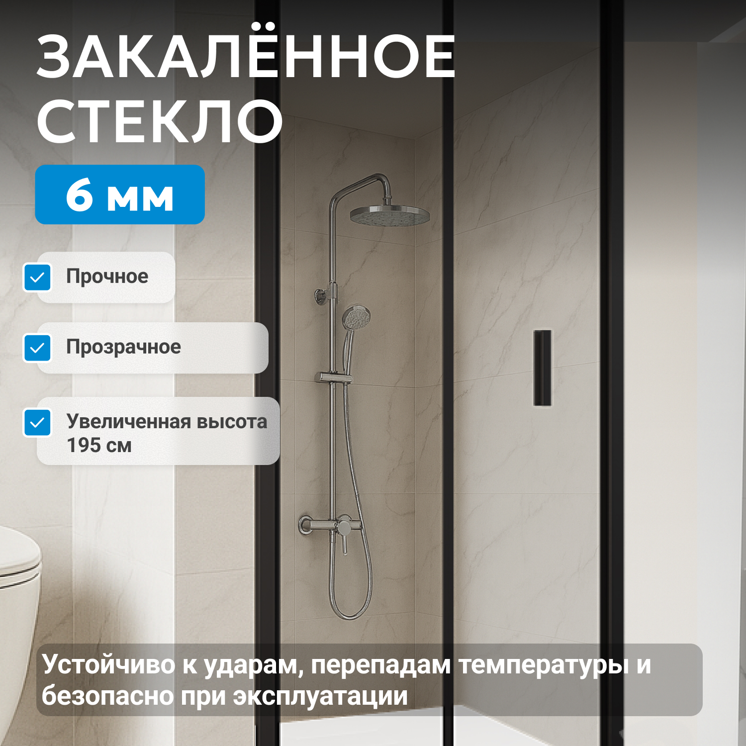 - закаленное, прозрачное стекло 6 мм