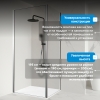 Профиль выполнен из хромированного металла, устойчивого к коррозии и влаге. Металлическая ручка рассчитана на длительную эксплуатацию. Высота уголка — 195 см, что подходит для квартир и коммерческих помещений с современной планировкой.