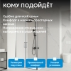 Монтаж ABBER AG04100C-S100 занимает минимальное время благодаря продуманной системе креплений и необходимым элементам для надежной установки. В комплекте отсутствуют доводчики и водоотталкивающее покрытие, что упрощает уход за изделием. Высота ограждения — 1950 мм, подходит для стандартных и высоких помещений.