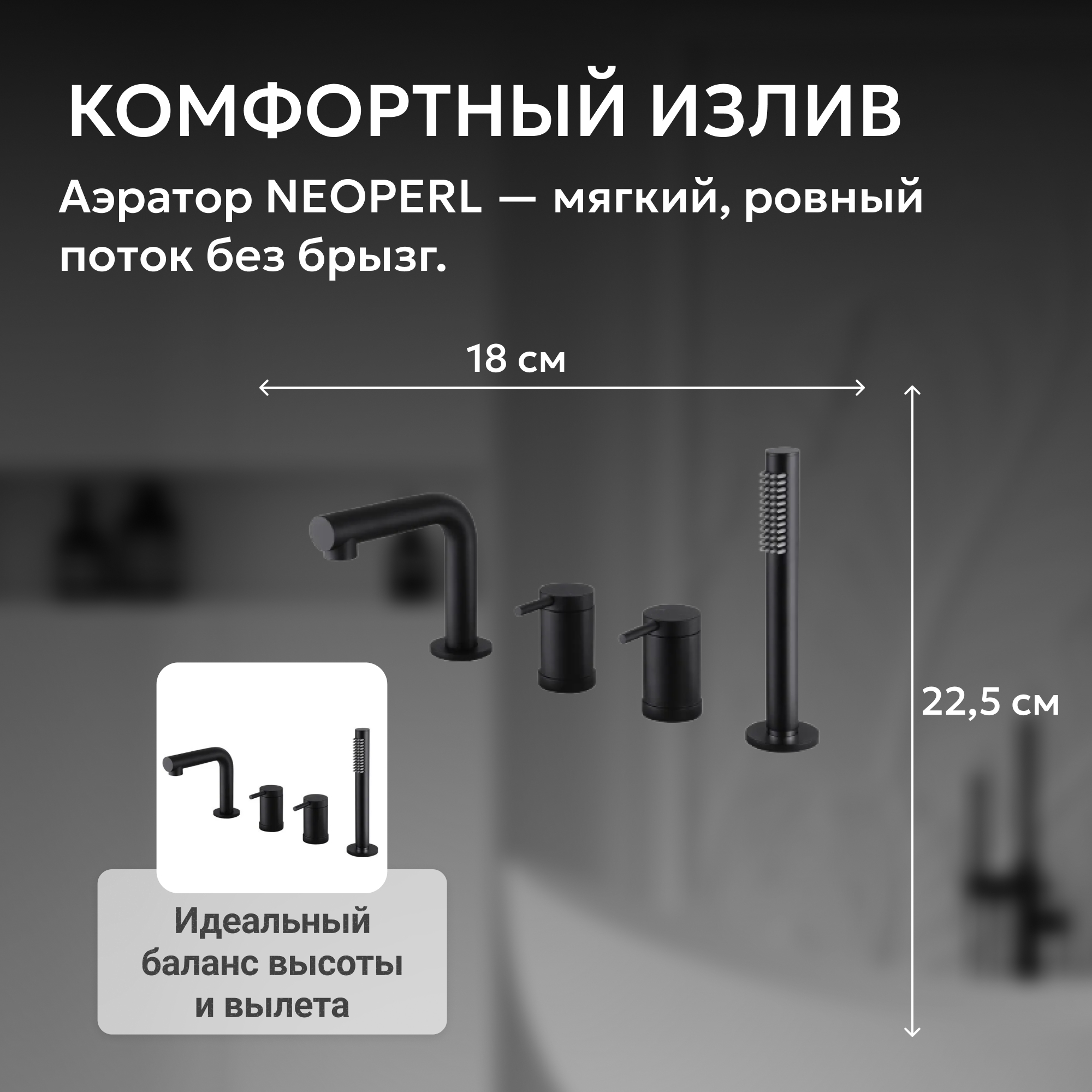 Смеситель ABBER Emotion AF8813B на борт ванны, черный матовый