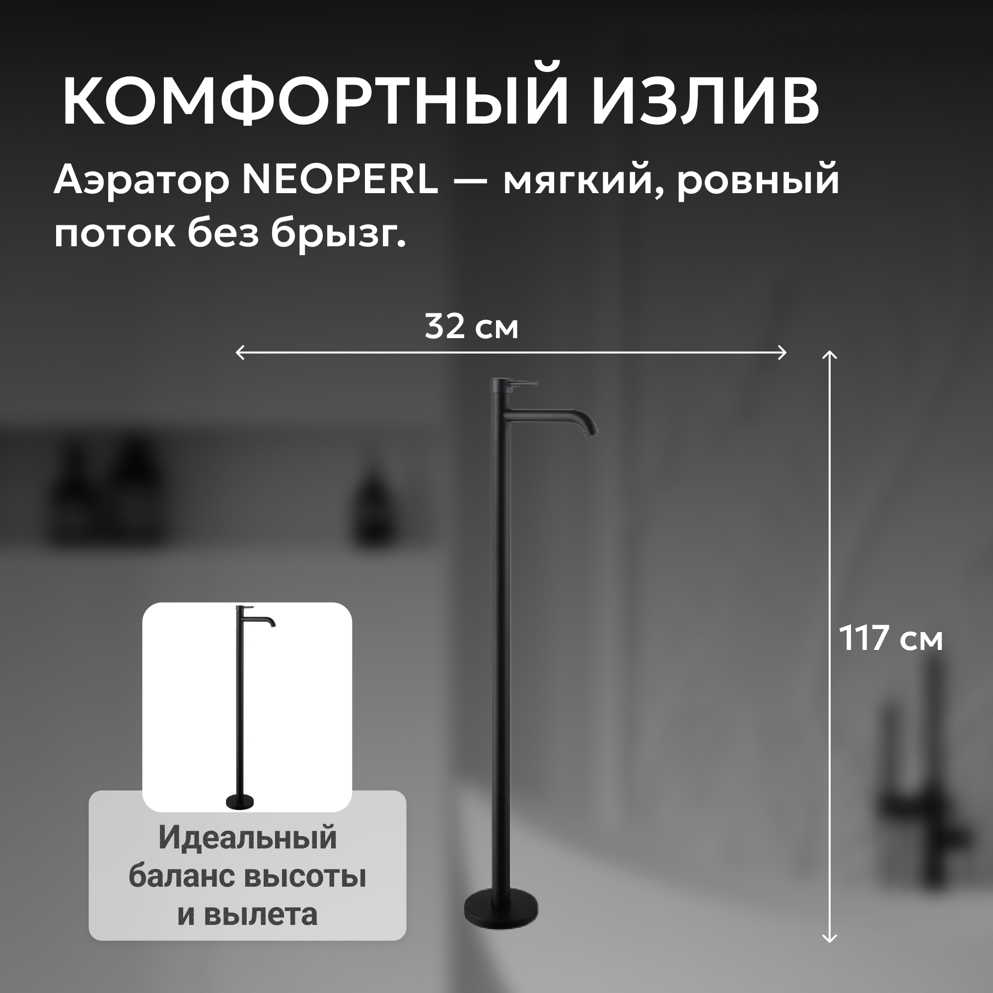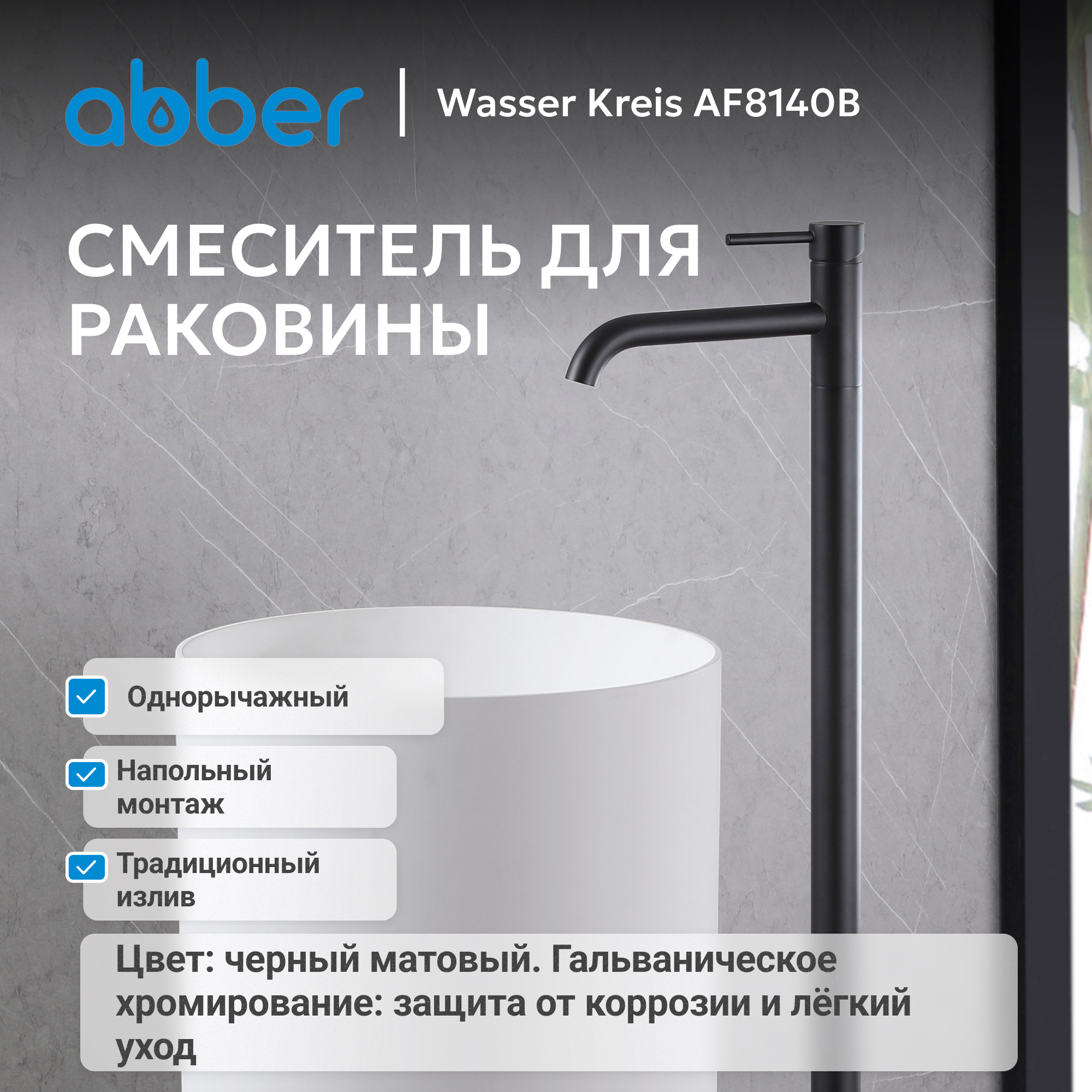 Смеситель ABBER Wasser Kreis AF8140B напольный для раковины, черный матовый