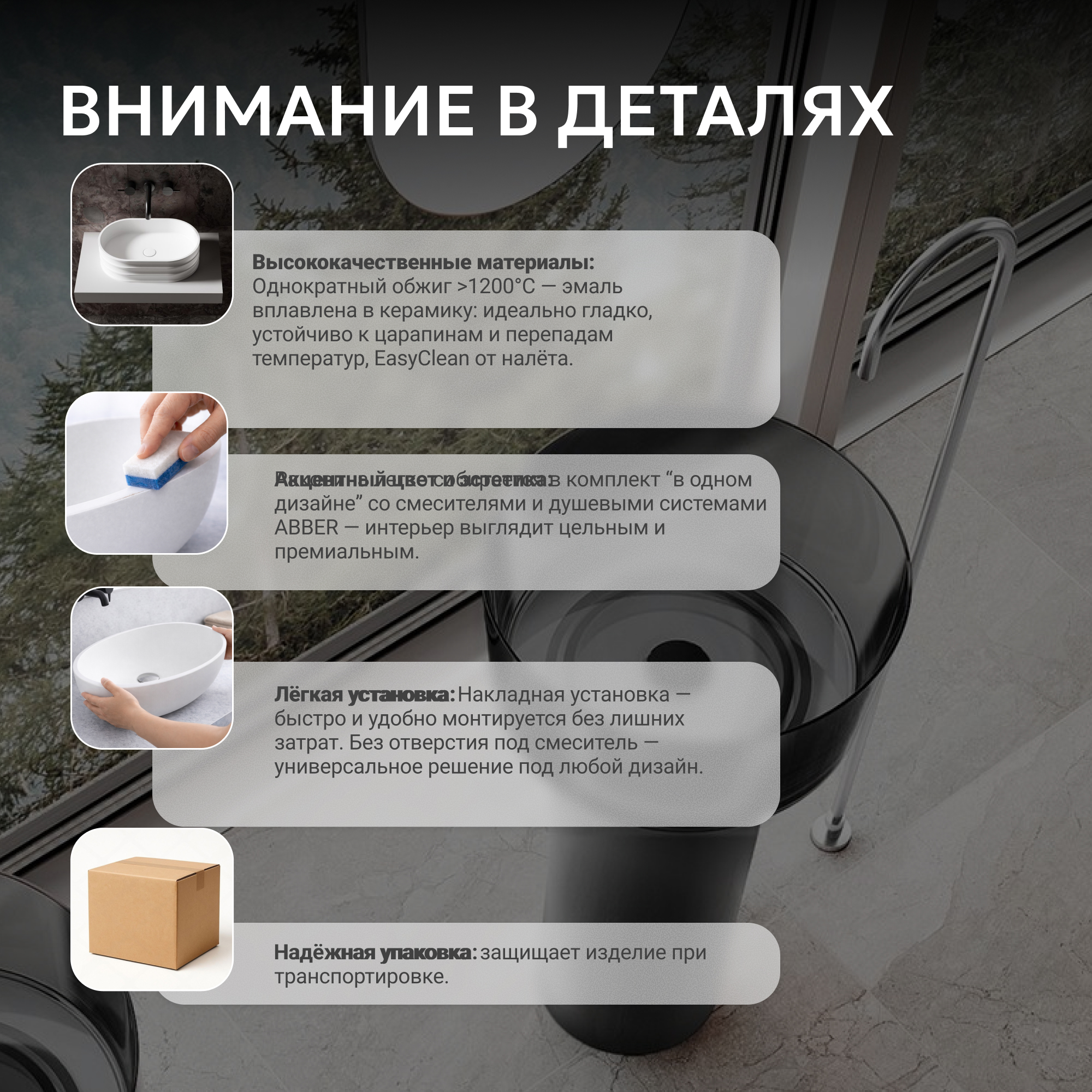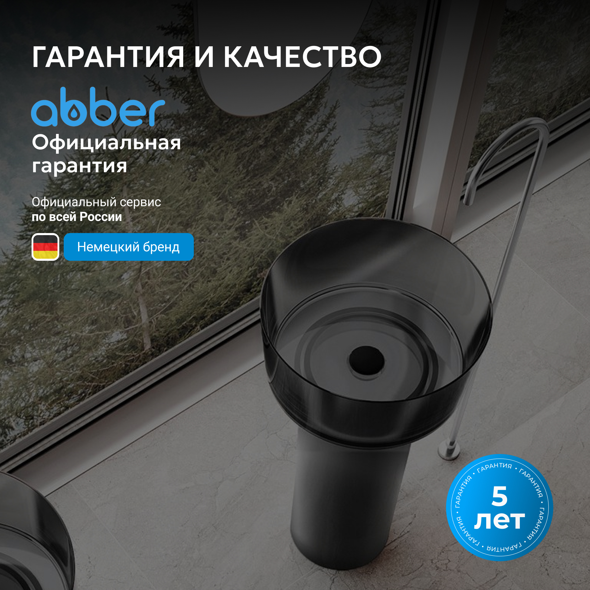 Раковина отдельностоящая прозрачная ABBER Kristall AT2702Onyx-H черная