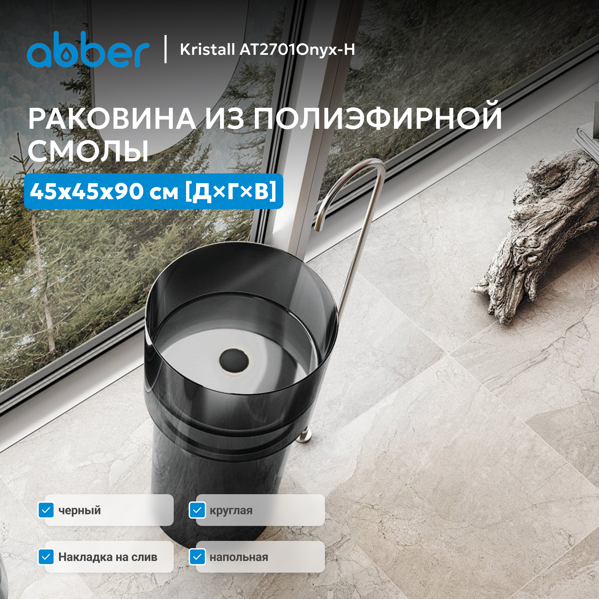 Раковина отдельностоящая прозрачная ABBER Kristall AT2701Onyx-H черная