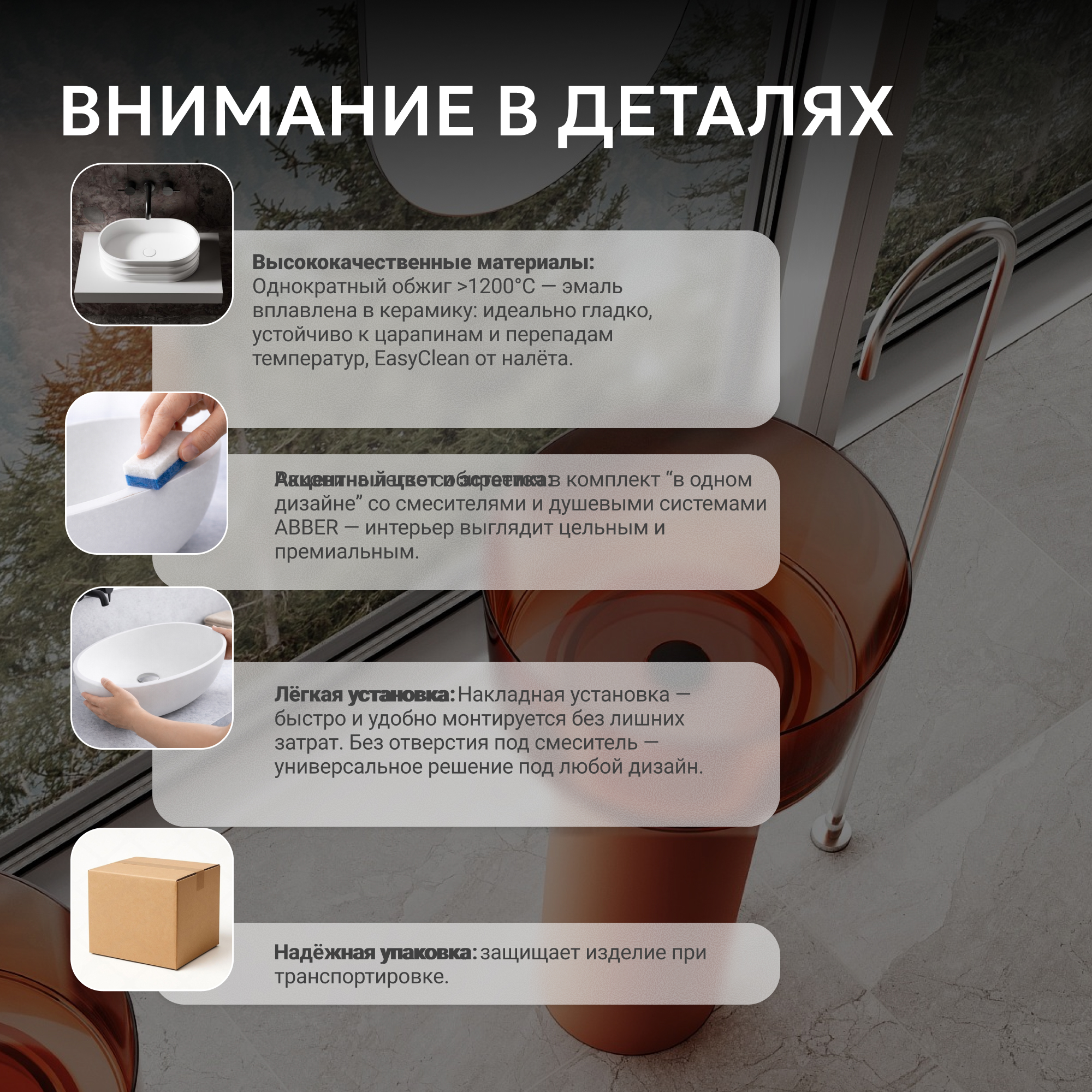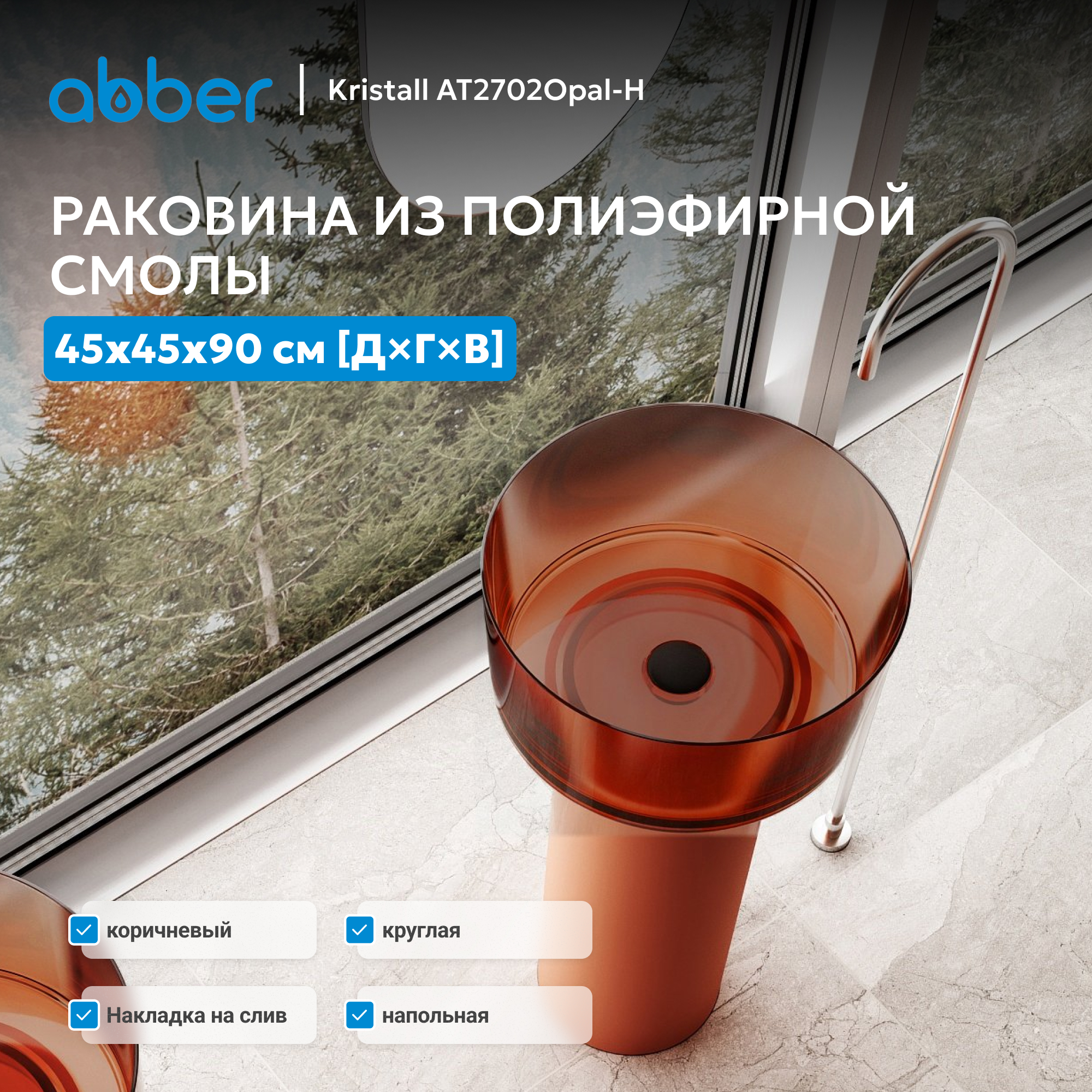 Раковина отдельностоящая прозрачная ABBER Kristall AT2702Opal-H коричневая