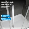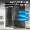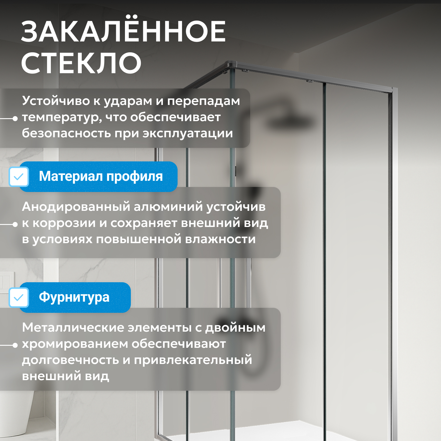 В комплект входят две раздвижные двери на двусторонних роликах, обеспечивающих плавное движение створок. Матовое закаленное стекло 6 мм сохраняет приватность и устойчиво к механическим воздействиям. Прочный хромированный профиль защищен от коррозии и легко очищается от загрязнений.