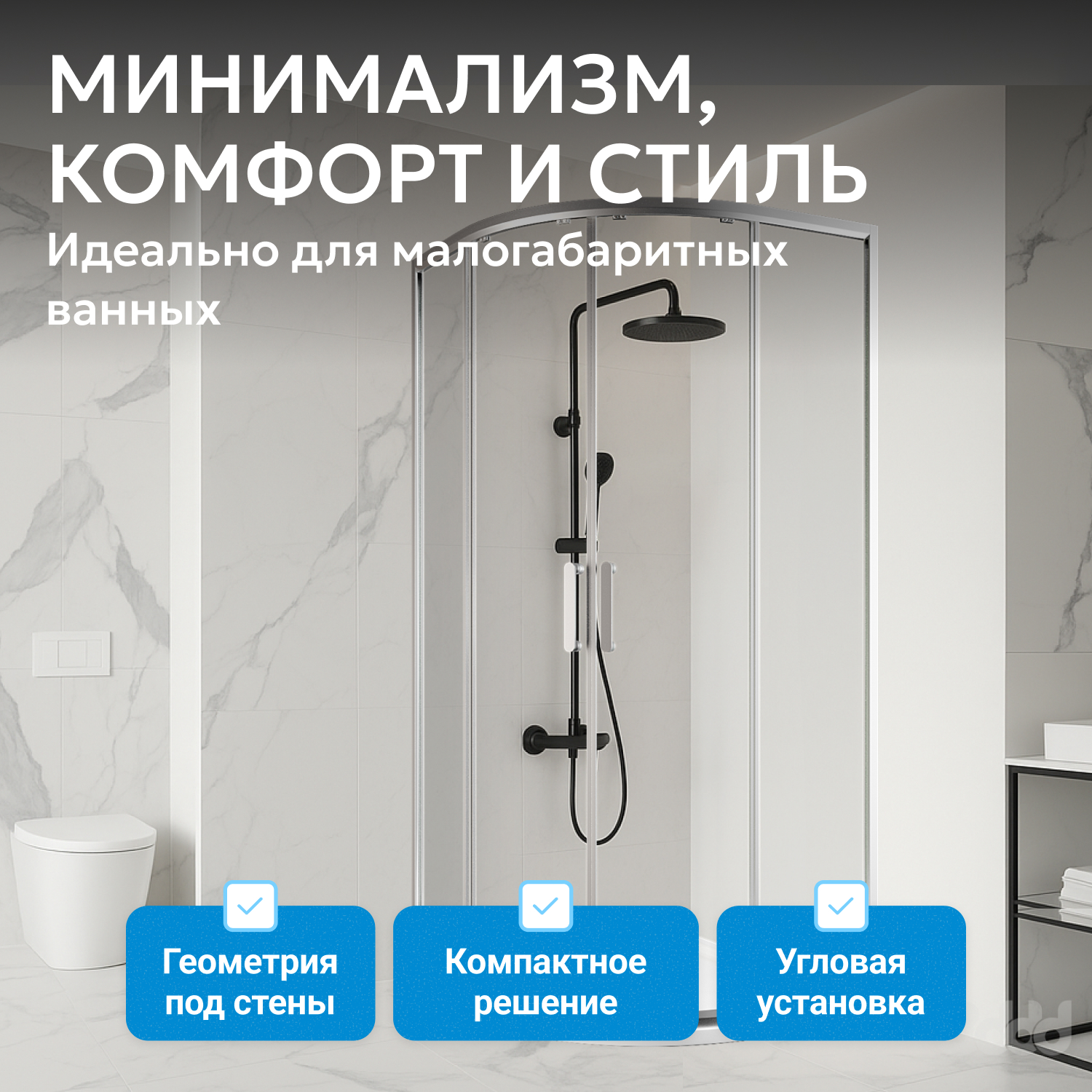 В комплекте двойные ролики для плавного хода дверей и повышения долговечности механизма. Универсальная модификация подходит для монтажа с низким поддоном, приобретаемым отдельно. Отсутствие доводчиков и водоотталкивающего покрытия облегчает обслуживание и увеличивает надёжность конструкции.