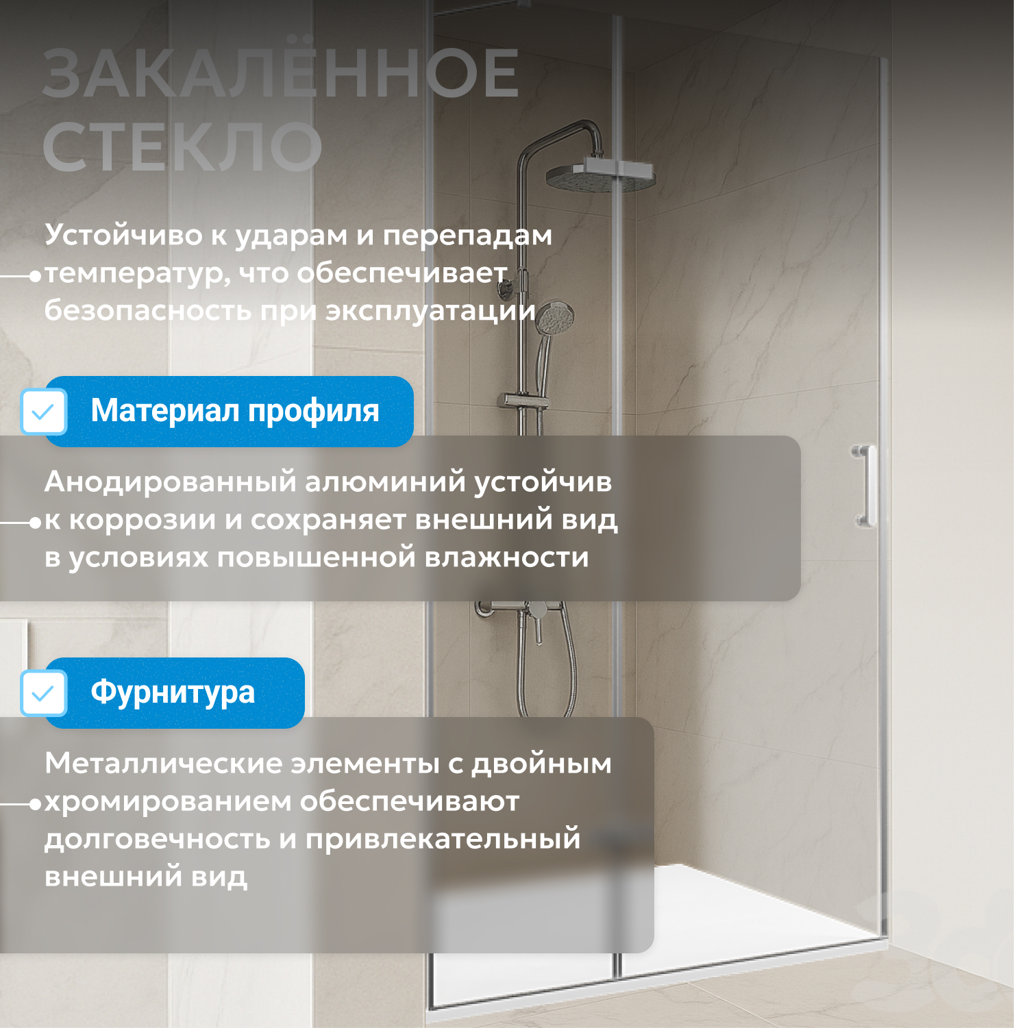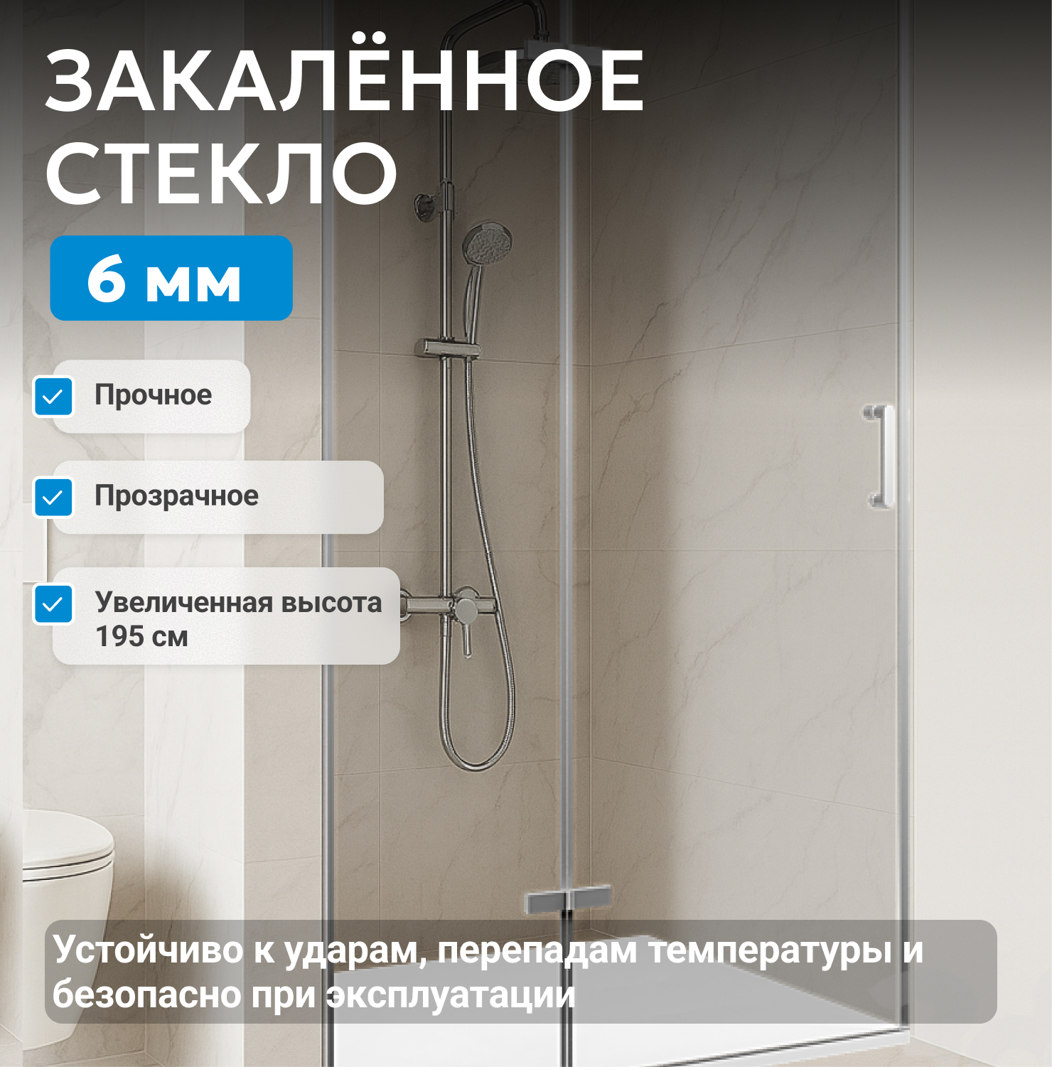 - закаленное, прозрачное стекло 6 мм