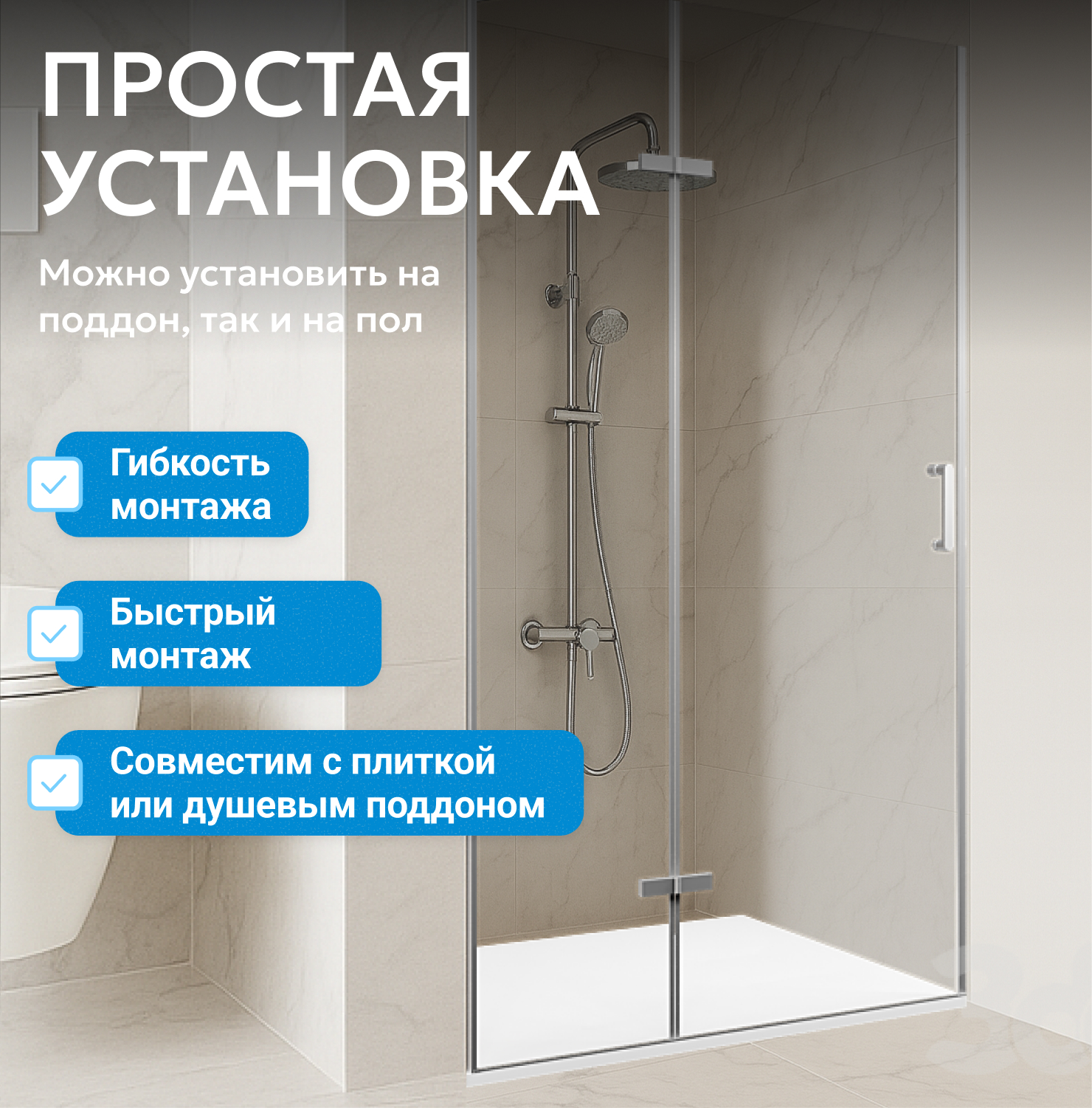 - возможна установка на пол и на поддон, поддон приобретается отдельно