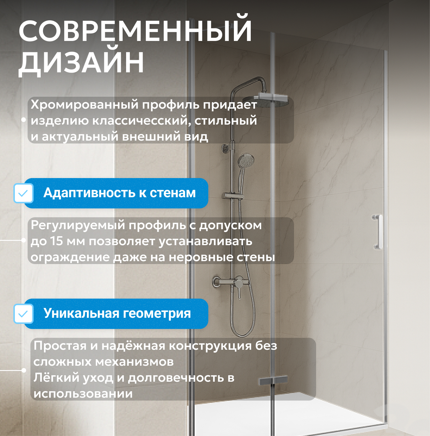 Душевые двери ABBER изготавливаются из анодированного алюминиевого профиля и закалённого, ударопрочного стекла. Также стеклянные душевые двери обладают рядом преимуществ: они легко моются, надежны и долговечны в эксплуатации.