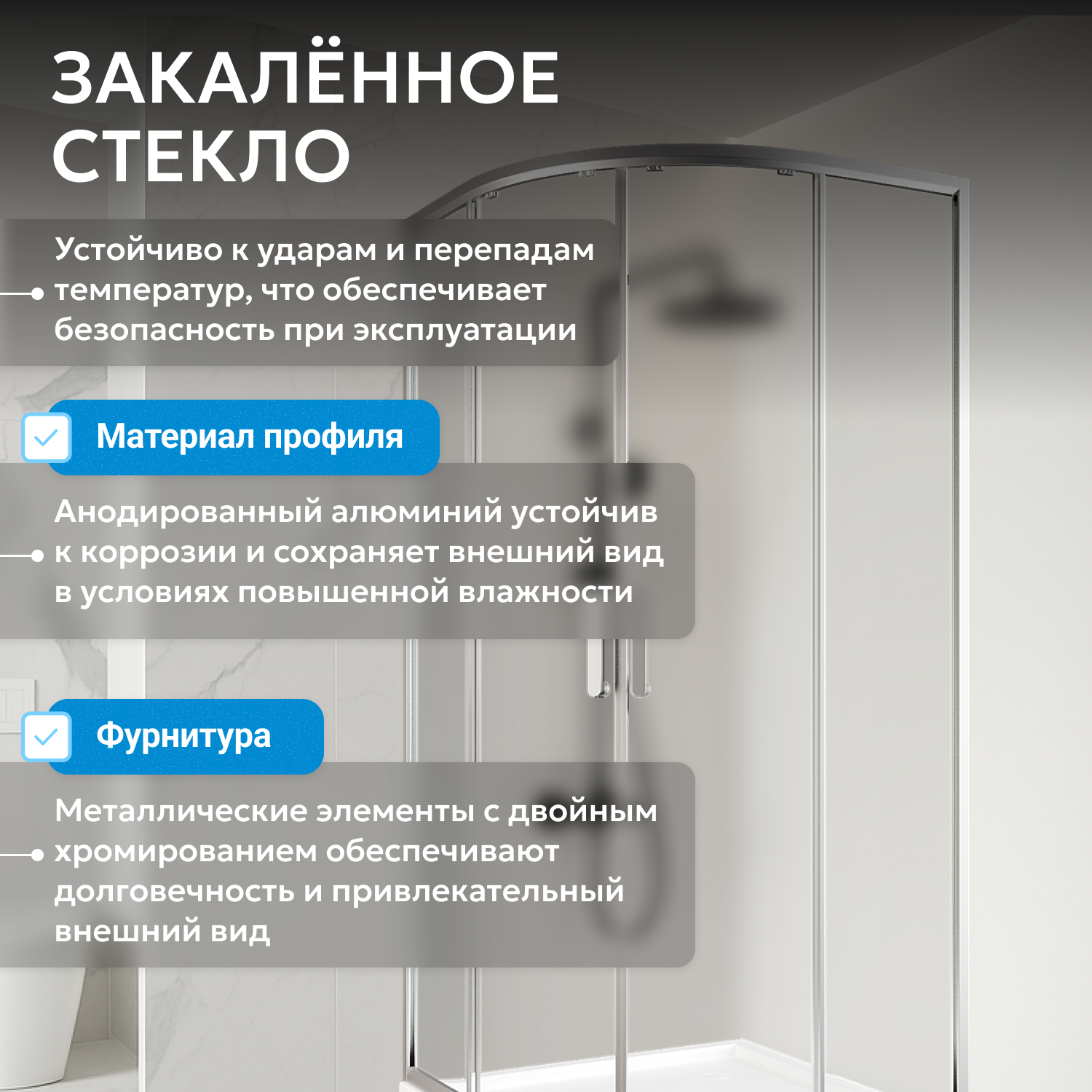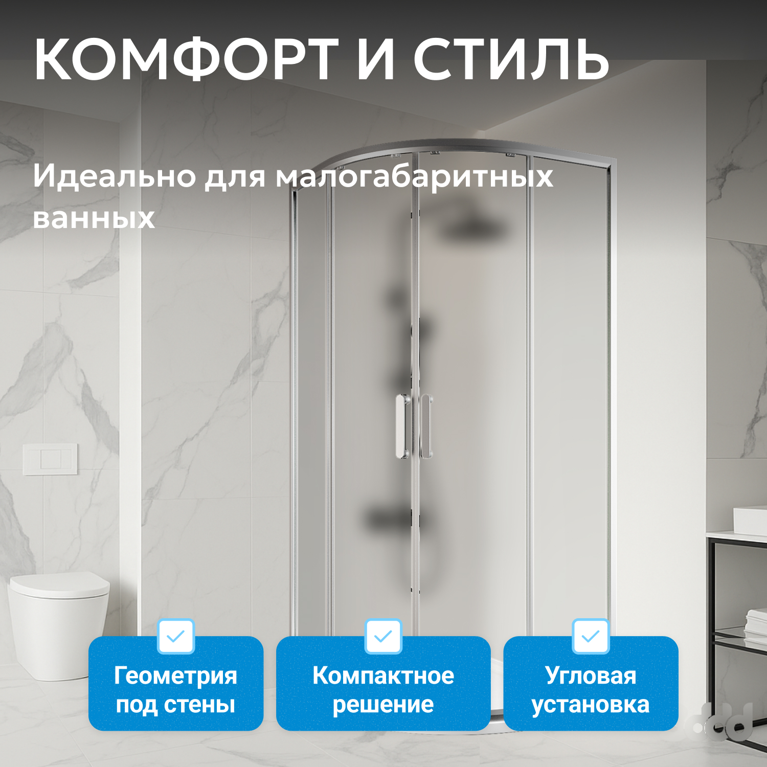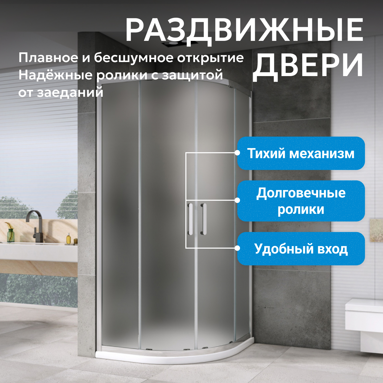 Раздвижная система на двойных роликах обеспечивает плавное движение дверей без рывков и нагрузки. Профиль из хромированного металла устойчив к коррозии даже при высокой влажности в санузлах. Закаленное матовое стекло толщиной 6 мм служит долго и надежно.