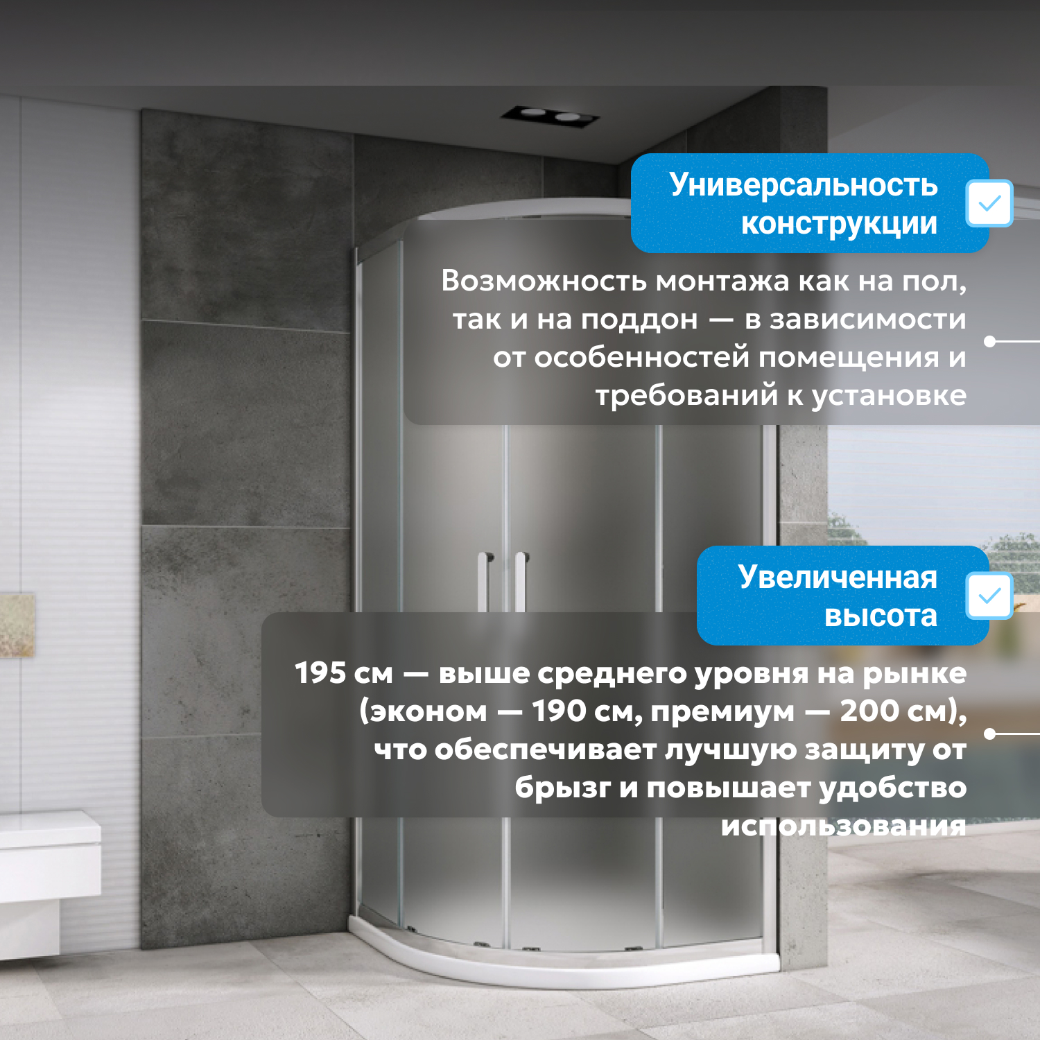Высота уголка 195 см подходит большинству помещений. Ширина входа 524 мм обеспечивает удобство эксплуатации даже в ограниченном пространстве. В комплекте — все необходимое для установки, кроме поддона, который подбирается отдельно.