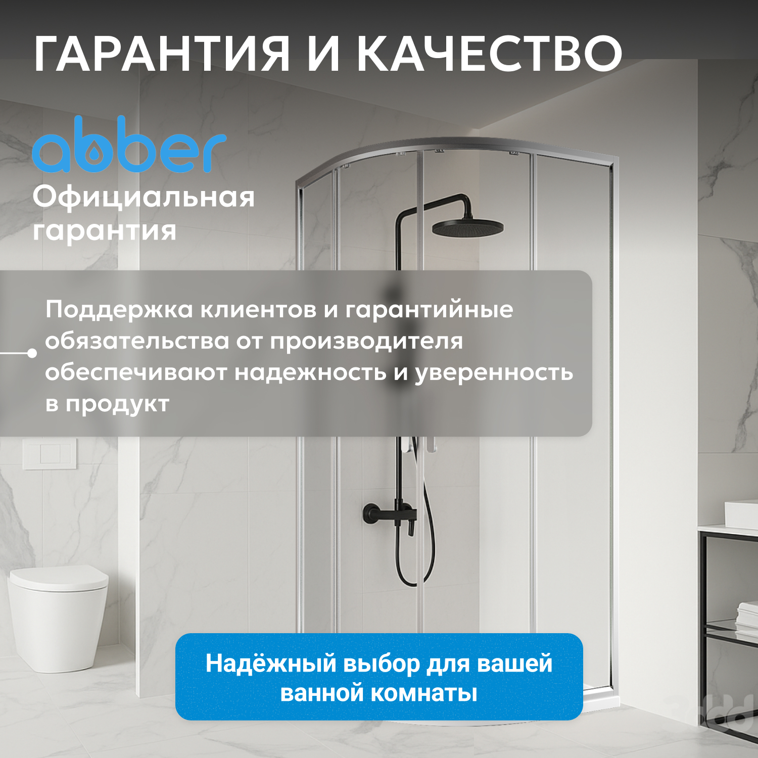 Российский бренд ABBER предлагает сервисное обслуживание по всей России. Сервисные центры расположены в Москве и Санкт-Петербурге. Конструкция и дизайн соответствуют немецким стандартам качества. Хромированный профиль устойчив к коррозии. Универсальность модификации позволяет устанавливать душевой уголок с поддоном различного типа. Гарантия производителя — 3 года.